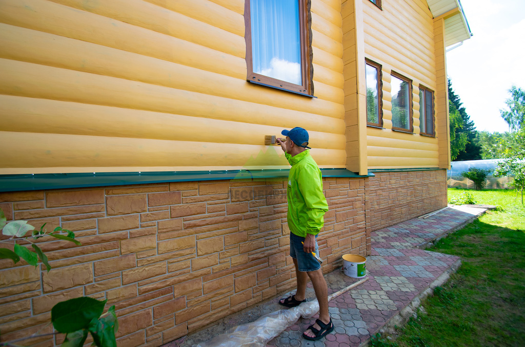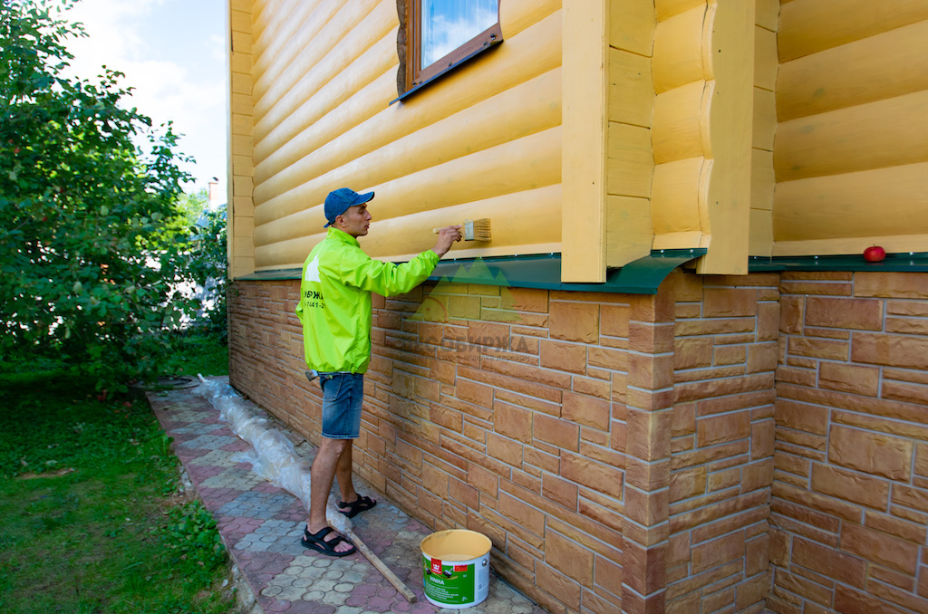 - Нанесение грунтовочного состава Tikkurila Valti Primer: Следующим шагом стало нанесение алкидной грунтовки Tikkurila Valti Primer. Этот продукт глубоко проникает в структуру древесины, закрепляя ее и создавая мощный барьер против влаги, грибка и синевы благодаря входящим в его состав антисептикам и фунгицидам. Грунтовка служит надежной основой для последующих слоев краски, значительно увеличивая срок службы всей системы покрытия.