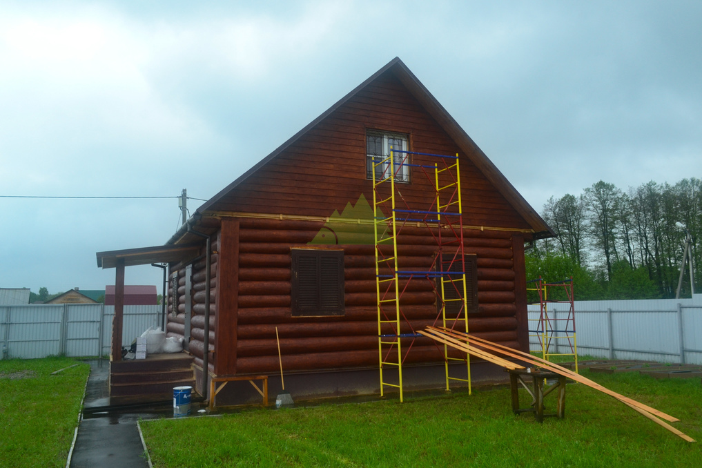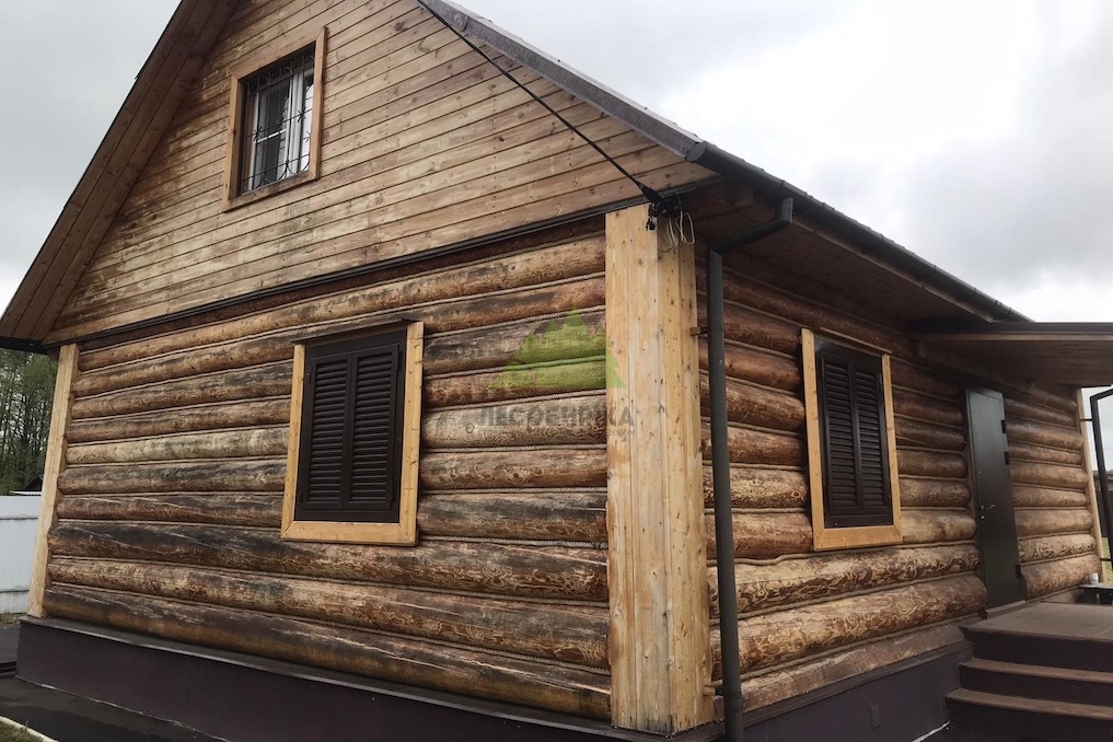 Именно с такой ситуацией столкнулся наш клиент из живописного Ламполова. Его дом, уютный сруб из сосны площадью 140 м², построенный с заботой, через год после самостоятельного покрытия фасада составом с высоким содержанием воска, начал стремительно терять свою привлекательность. Бревна потемнели, поверхность стала липкой и неопрятной. Все природные светлые оттенки сосны исчезли, уступая место неприглядному черному налету. Очевидно, что состав, выбранный клиентом ранее, оказался не только неэффективным, но и пагубным для древесины, создав на поверхности пленку, препятствующую "дыханию" дерева и способствующую развитию микроорганизмов.