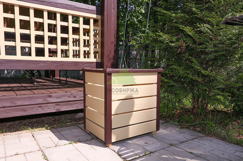 Отдельного внимания заслуживает роскошная беседка из бруса, а также элегантные кашпо нашего собственного производства, которые также подверглись преображению. Для них мы выбрали элитную систему окрашивания на основе гибридного масла "Renner" M300 в комплексе с грунтом "Renner" M101. Процесс подготовки беседки был аналогично тщательным: мы выполнили шлифовку всей поверхности, как снаружи, так и внутри, включая пол, используя абразивы P80 и P120 для достижения идеальной гладкости и открытости пор древесины.