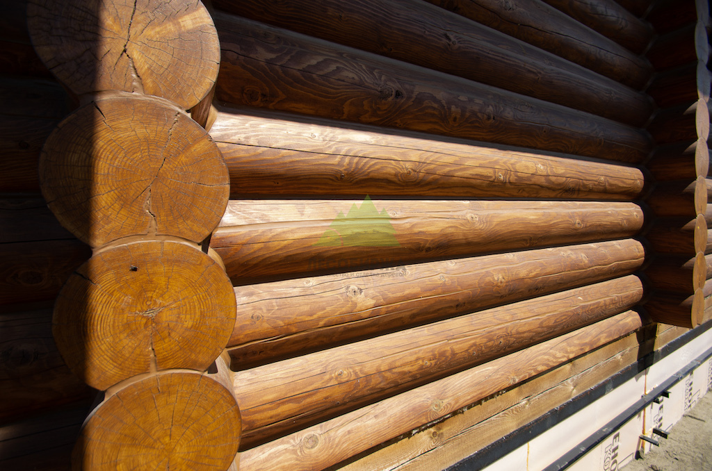 После завершения работ по герметизации, когда швы были идеально сформированы и высохли, наступил этап финишной обработки – покраска сруба маслом. Наши специалисты использовали высококачественное масло, специально разработанное для деревянных фасадов. Масляное покрытие глубоко проникает в структуру древесины, обеспечивая надежную защиту от влаги, УФ-излучения, плесени, грибка и насекомых. В отличие от пленочных покрытий, масло не шелушится и не трескается, а со временем лишь слегка выцветает, что упрощает последующее обновление. Выбор цвета был согласован с клиентом, и наши мастера Лесобиржи-Спб тщательно нанесли покрытие в несколько слоев, добиваясь равномерного тона и подчеркивая естественную красоту сосновых бревен. Дом приобрел свежий, ухоженный вид, гармонично вписываясь в окружающий ландшафт "Рощинской Сказки".