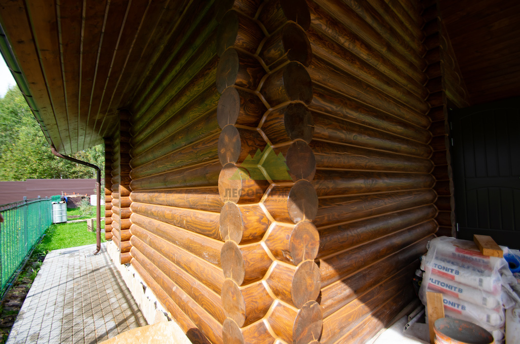 Наши мастера приступили к работе с тщательной подготовки поверхности. Бревна бани были аккуратно отшлифованы для обеспечения идеальной адгезии, а затем обработаны специальным грунтом-антисептиком. Эта обязательная процедура защищает древесину от воздействия ультрафиолета, влаги, грибка и плесени, значительно продлевая срок службы всей конструкции. Для внешней покраски мы выбрали высококачественное итальянское масло YS M300. Этот состав зарекомендовал себя как исключительно устойчивый к агрессивным внешним воздействиям, перепадам температур и высокой влажности – условиям, характерным для нашего региона. Масло подчеркнуло естественную текстуру дерева, придав фасаду глубокий, насыщенный оттенок, который будет радовать глаз многие годы.