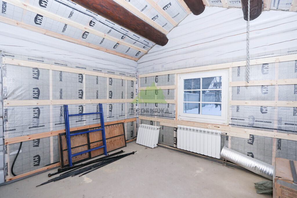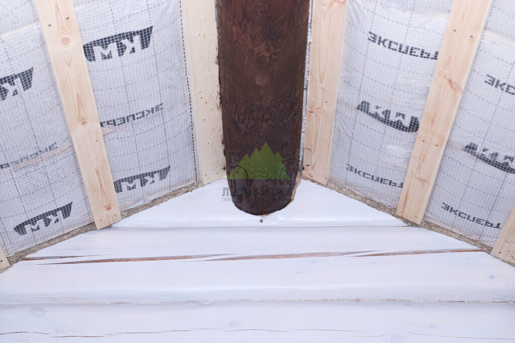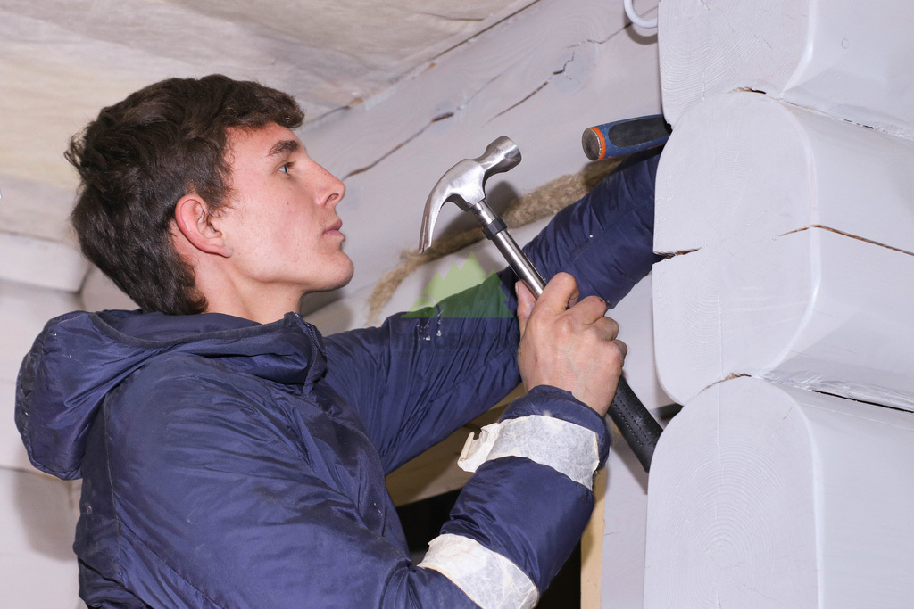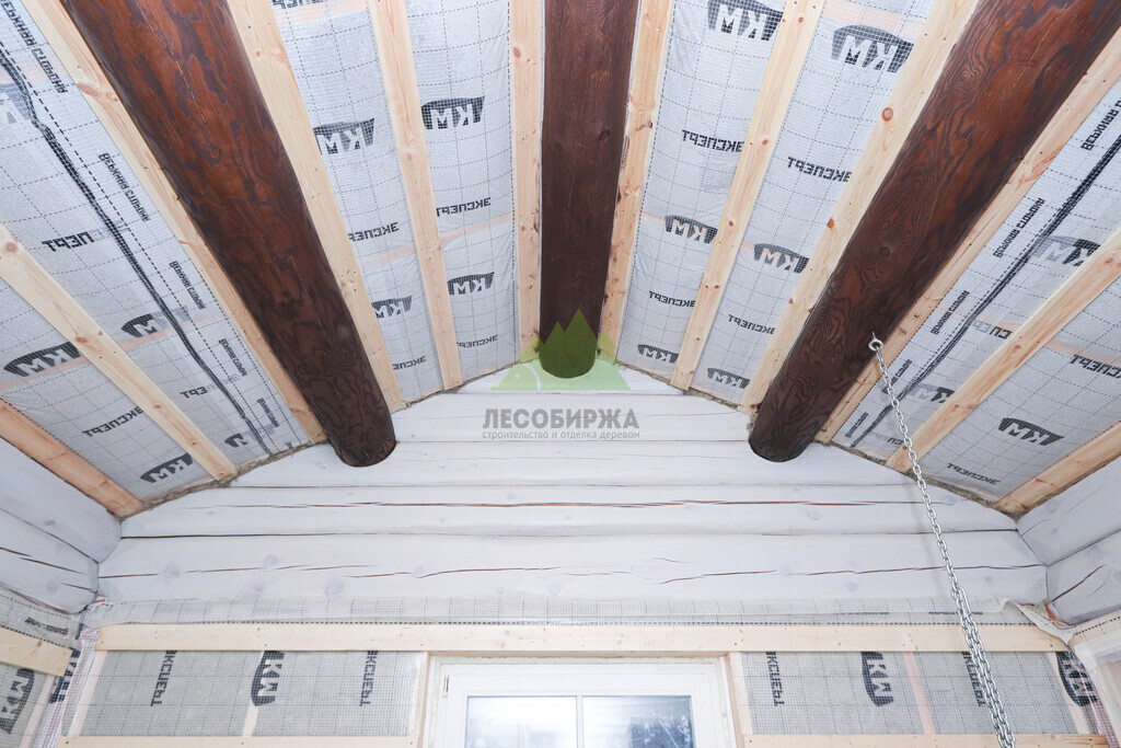 Финальным, но не менее значимым этапом стало уплотнение мест стыков стен и крыши. Для этого наши мастера использовали войлочно-джутовую ленту – натуральный, экологически чистый материал, который идеально подходит для деревянных конструкций. Этот материал обладает превосходными тепло- и звукоизоляционными свойствами, что критически важно для поддержания комфорта в доме-бане в условиях переменчивого климата Ленинградской области. Благодаря своей упругости и эластичности, джутовая лента плотно заполняет зазоры, предотвращая сквозняки и утечки тепла, а также помогает в борьбе с шумом. Кроме того, джут устойчив к появлению грибка и плесени, что является критически важным аспектом для помещений с повышенной влажностью, таких как баня. Аккуратная и профессиональная конопатка этих участков не только завершила эстетический облик, но и обеспечила дополнительную герметичность и энергоэффективность всего строения, значительно увеличив его долговечность.