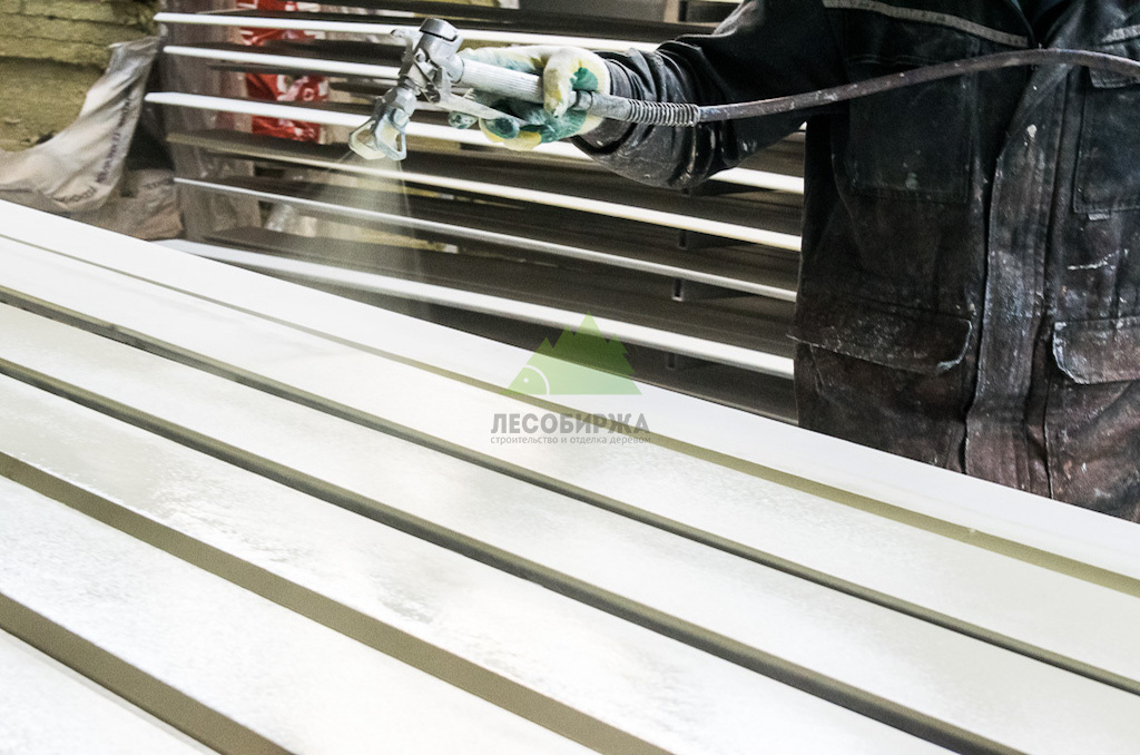 Подшив свесов кровли: покраска планкена в белый цвет (RAL 1773) с гарантией 15 лет | ООО "ЛесоБиржа" - СПб. Санкт-Петербург