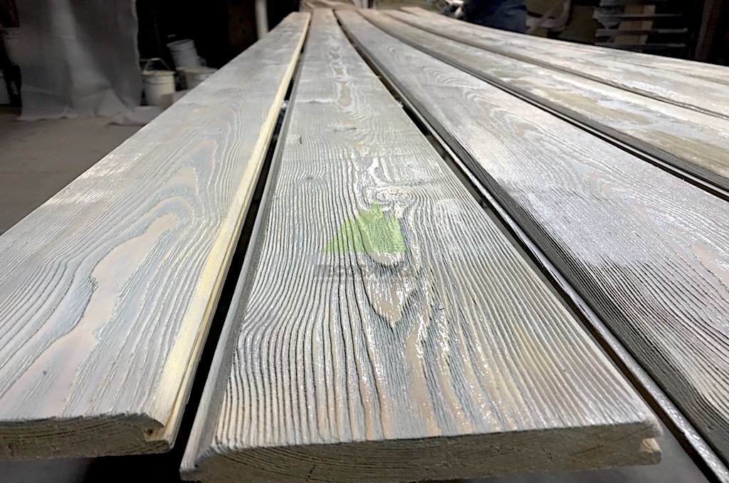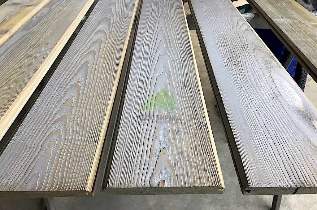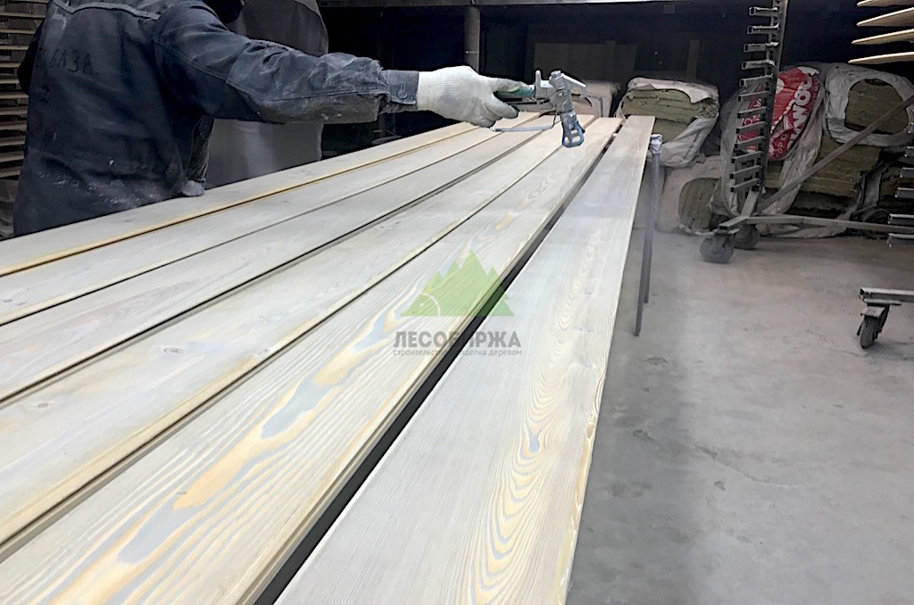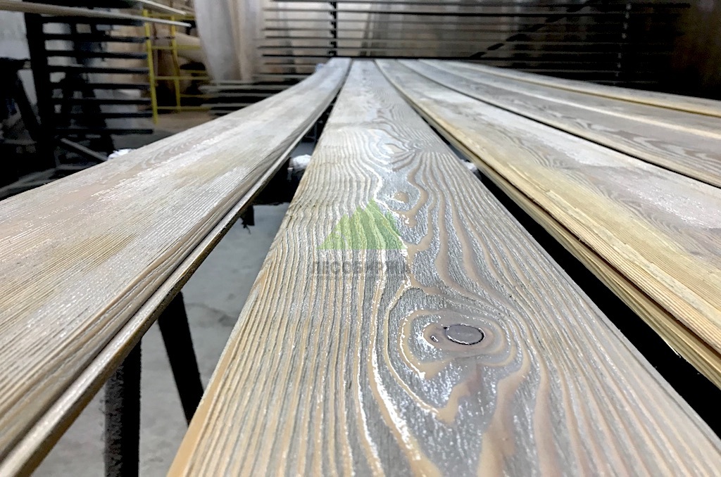 Работа над этим проектом велась в нашем специализированном цеху Лесобиржи-Спб, оснащенном современным оборудованием, позволяющим выполнять браширование и покраску с ювелирной точностью. Весь процесс состоял из нескольких тщательно контролируемых этапов, каждый из которых играл ключевую роль в достижении желаемого результата – идеальной брашированной поверхности с глубоким оливково-серым оттенком и долговечной защитой.