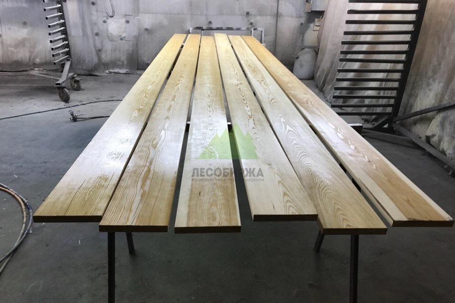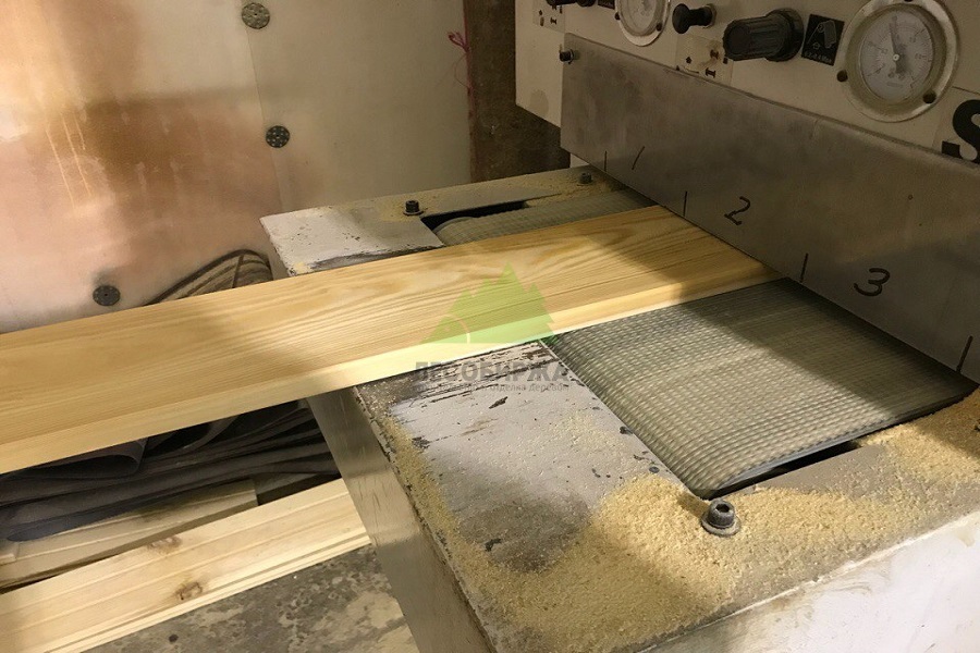 1. Предварительная шлифовка: Каждая доска планкена прошла тщательную шлифовку на станке двумя лентами с последовательным использованием зерна 80 и 150. Это обеспечило идеально гладкую поверхность, удаление ворса и максимальное раскрытие пор древесины для лучшего проникновения защитных составов.