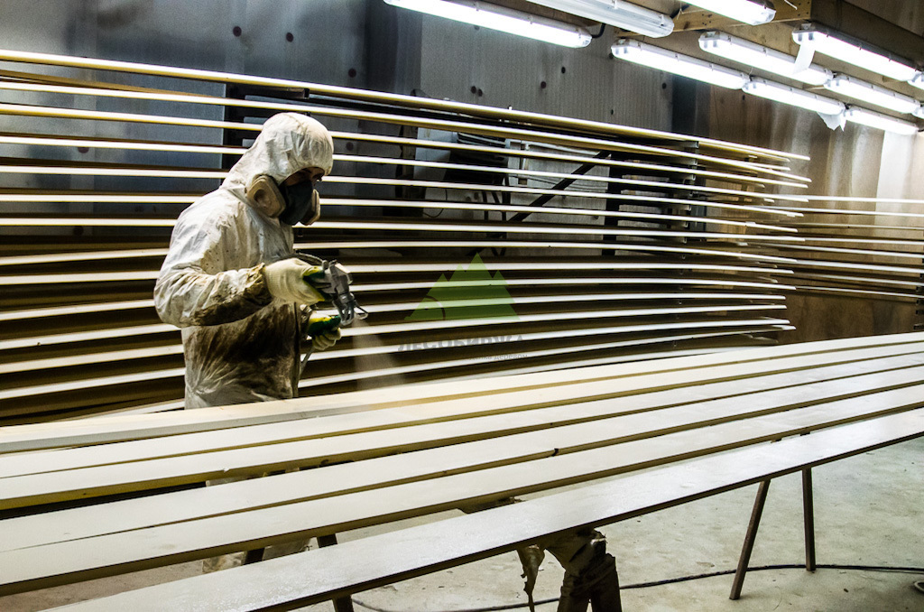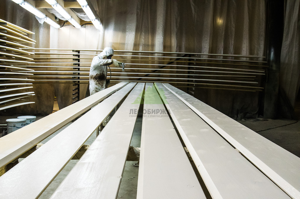 Подготовка соснового планкена к покраске: цеховое грунтование в Ленинградской области | ООО "ЛесоБиржа" - СПб. Санкт-Петербург