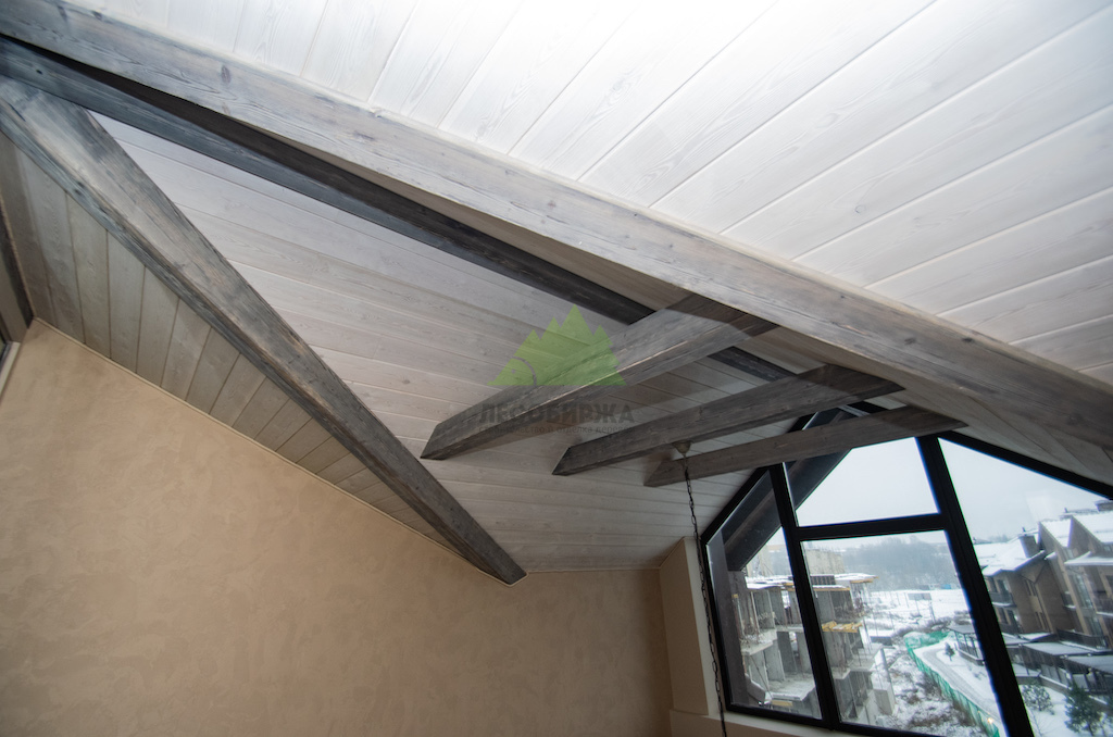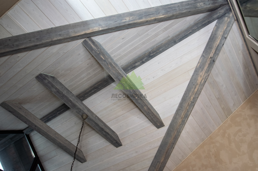 После изготовления в столярном цехе, фальшбалки отправились в наш покрасочный цех. Здесь над ними "колдовали" наши мастера-маляры. Процесс покраски был многоэтапным и осуществлялся по нашей уникальной системе "Зимняя Сказка", разработанной специалистами Лесобиржи-Спб для создания эффекта глубоко состаренного, но при этом изысканного дерева. Суть этой системы заключается в послойном нанесении нескольких оттенков краски с последующей частичной зачисткой и патинированием. В данном проекте были использованы два цвета, которые подчеркнули рельеф брашированной поверхности и придали балкам уникальный "выцветший" вид, словно они веками находились под солнцем юга Франции. Результат превзошел все ожидания: фальшбалки выглядели роскошно, дорого и убедительно "старо", добавляя помещению неповторимый шарм и индивидуальность.
