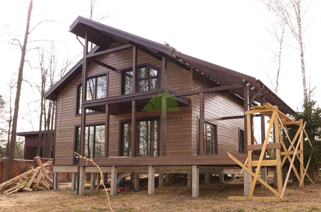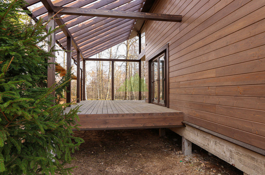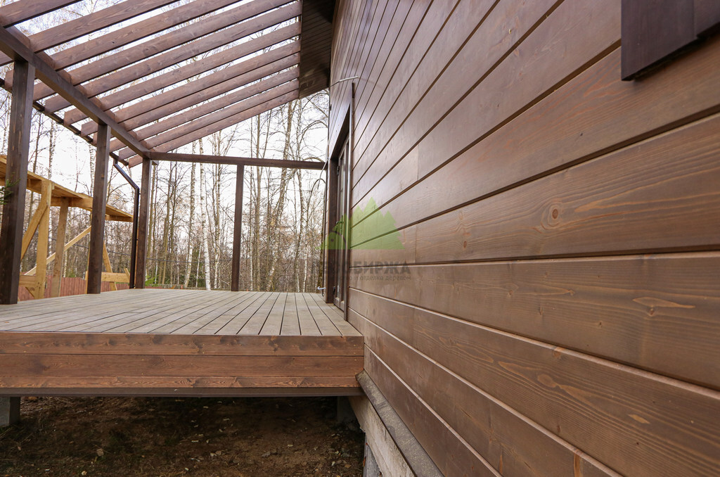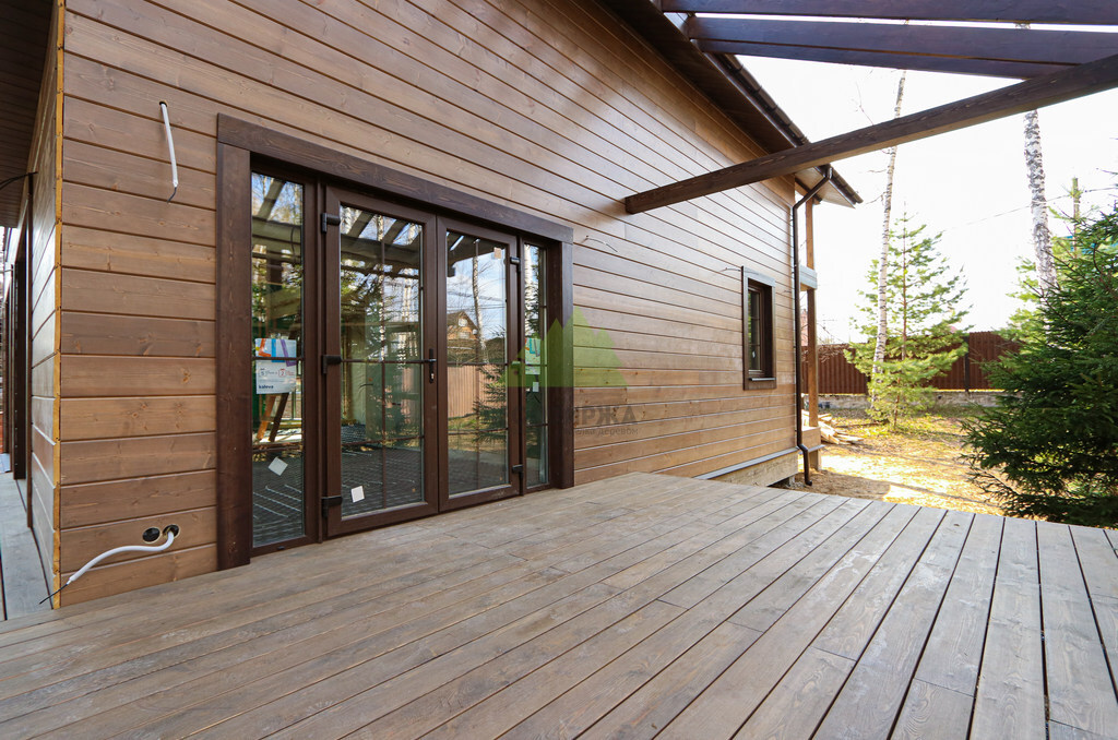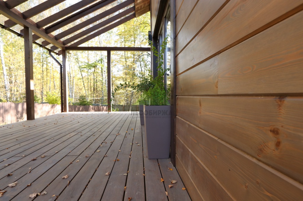 Начало работы ознаменовалось тщательным анализом пожеланий заказчицы и особенностей объекта. Наши специалисты Лесобиржи-Спб провели детальную консультацию, в ходе которой были представлены различные варианты отделки и материалов. Основное внимание было уделено выбору для фасада – заказчица остановилась на имитации бруса "Карельский профиль". Это решение было единодушно поддержано нашими экспертами, ведь "Карельский профиль" является одним из лучших материалов для наружной отделки, сочетая в себе природную красоту дерева, улучшенные характеристики по влагостойкости и уникальную геометрию, обеспечивающую надежный скрытый монтаж. Для террасы клиентка выбрала массивную доску из лиственницы высшего сорта. Этот материал идеально подходит для эксплуатации на открытом воздухе благодаря своей естественной устойчивости к гниению, вредителям и перепадам температур, что особенно актуально для переменчивого климата Санкт-Петербурга и Ленинградской области.