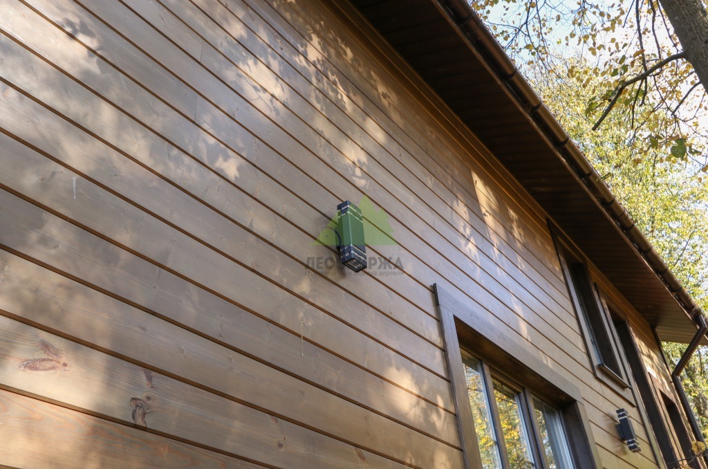 Центральным элементом проекта стало устройство фасада из имитации бруса "Карельский профиль". Выбор данного материала от Лесобиржи-Спб не случаен: его уникальная геометрия со смещенной фаской и специальной площадкой перед пазом обеспечивает максимально надежный и при этом совершенно незаметный скрытый монтаж. Это означает отсутствие видимых крепежных элементов на поверхности досок, что придает фасаду безупречный и монолитный вид, подчеркивая естественную текстуру дерева. Каждая доска тщательно подбиралась по цвету и фактуре, чтобы обеспечить гармоничный переход и единое визуальное восприятие. Наши монтажники, обладающие глубокими знаниями и многолетним опытом работы с деревянными фасадами, выполняли укладку панелей с ювелирной точностью, контролируя каждый стык и соединение. Соблюдение технологии и аккуратность – залог долговечности и эстетики, а для Лесобиржи-Спб эти принципы являются основополагающими.