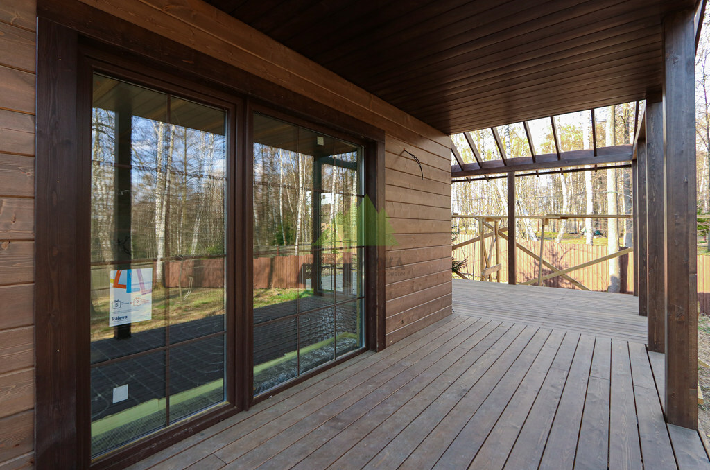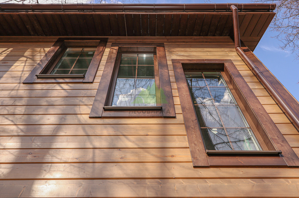 Отдельное внимание было уделено финишной обработке фасада. Для защиты дерева от агрессивных воздействий окружающей среды, таких как ультрафиолетовое излучение, влажность и перепады температур, мы применили высококачественную лаковую систему Renner. Этот лак известен своей превосходной адгезией, эластичностью и долговечностью. Нанесение лака производилось в несколько слоев с промежуточной шлифовкой, что обеспечило глубокое проникновение защитного состава и формирование прочного, износостойкого покрытия. Выбранная лаковая схема не только надежно оберегает дерево, но и подчеркивает его естественную красоту, придавая фасаду благородный блеск и глубину цвета. Благодаря применению такой системы, фасад будет радовать своей безупречностью долгие годы, не требуя частой реставрации, что значительно экономит время и средства заказчицы.