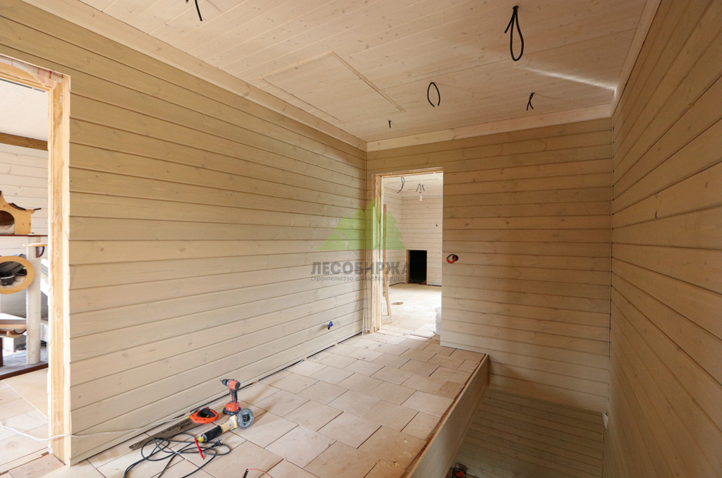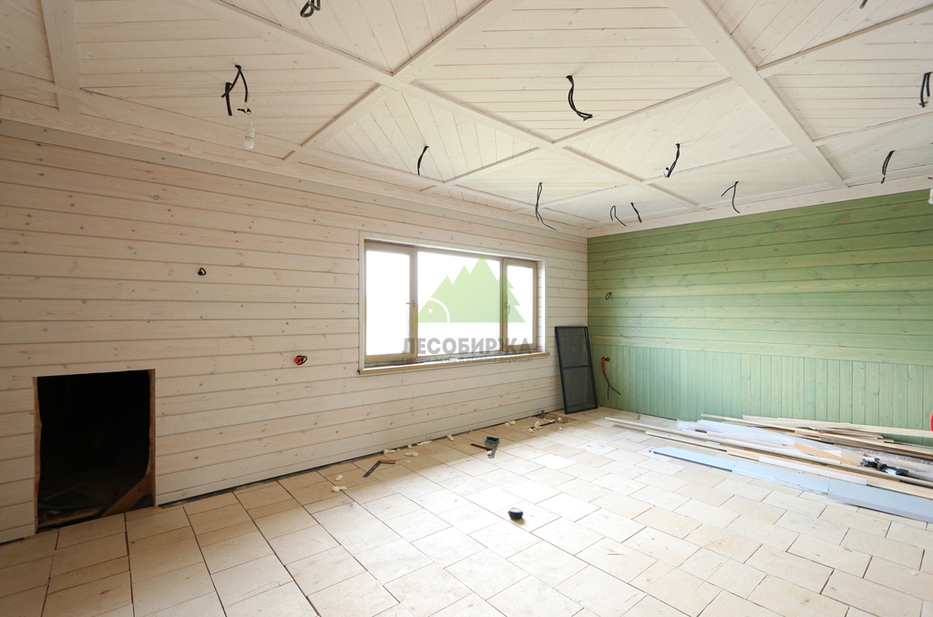 Этот объект — наша гордость. Здесь мы отошли от шаблонов и работали как художники, где каждая доска — это мазок кисти. Отделка стен и потолков деревом — это не просто строительный этап, это создание атмосферы. Теперь этот дом не просто строение, он имеет душу, он дышит и греет своих хозяев теплом натурального дерева