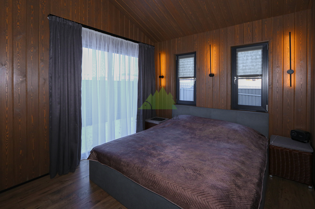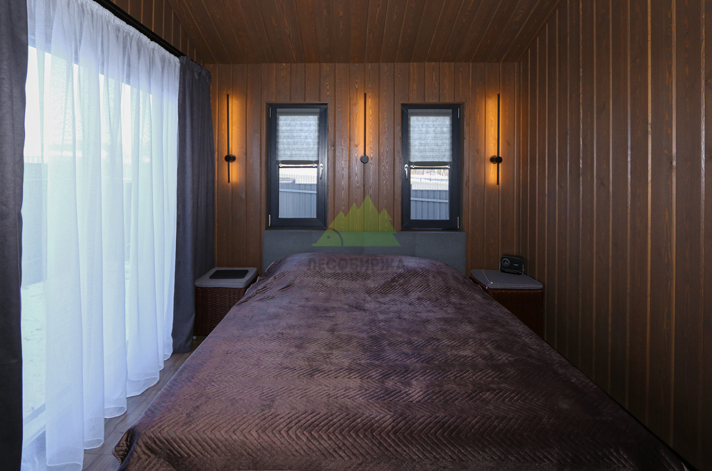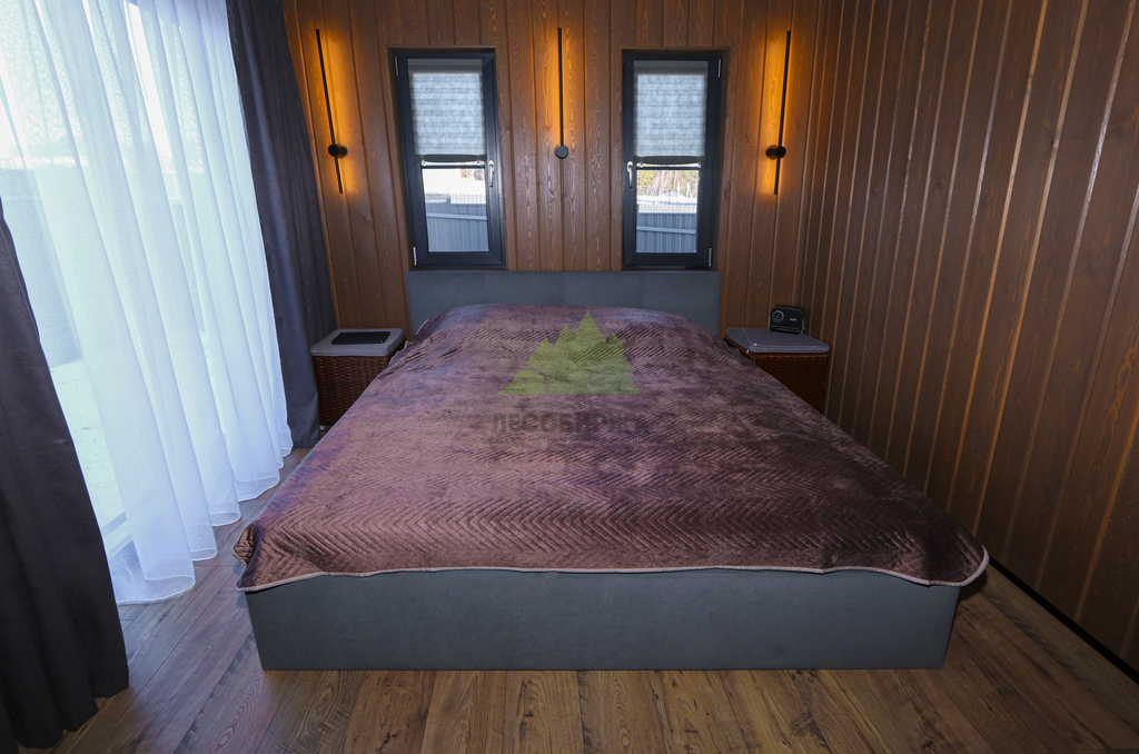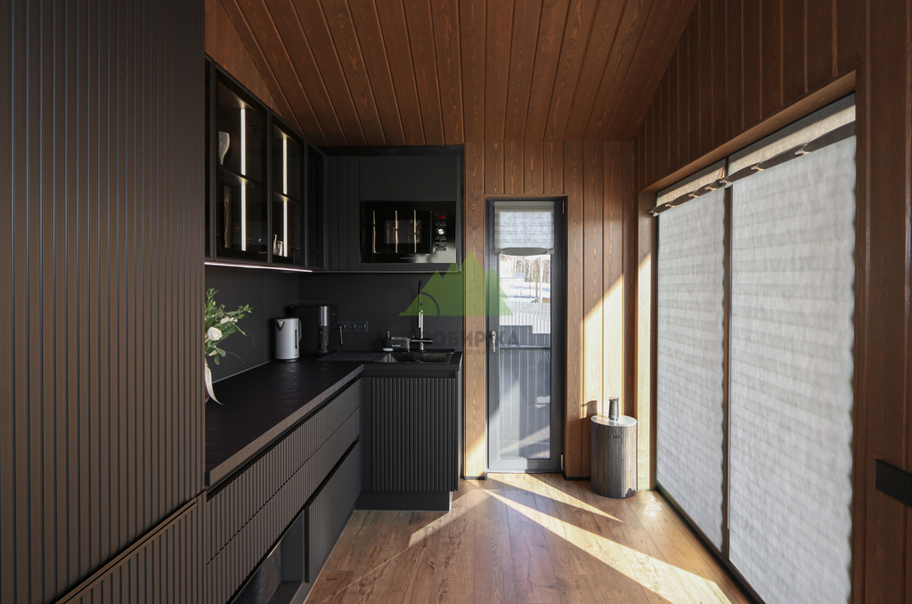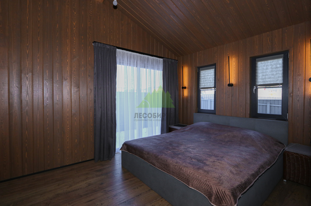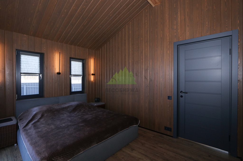 Этот проект стал для нас особенно интересным вызовом – заказчик поставил четкую задачу по использованию исключительно российских материалов премиум-класса. Мы предложили оптимальное решение с использованием ангарской сосны сорта ‘Прима’ как для имитации бруса, так и для вагонки. Этот сорт идеально подошел благодаря своей красивой текстуре и минимальным сучкам. Особенно важно было правильно подобрать лакокрасочное покрытие – мы остановились на краске Нордик Сауна от ‘Финкраски’, которая отлично сочетается с древесиной и обеспечивает долговечное покрытие. Предварительная покраска на производстве позволила добиться идеального равномерного покрытия, сохранив при этом естественную красоту материала.