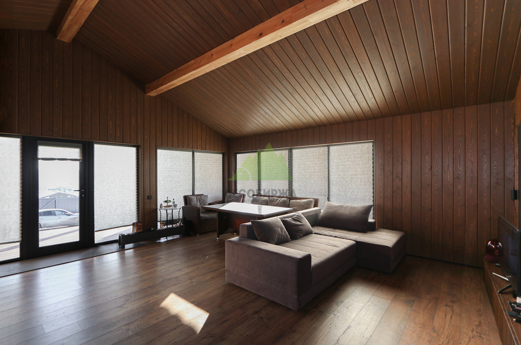 Наш специалист Светлана предложила оптимальное решение – имитацию бруса и вагонку из ангарской сосны сорта “Прима”. Этот сорт полностью соответствовал заявленным требованиям заказчика благодаря: