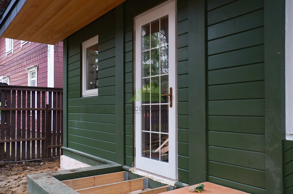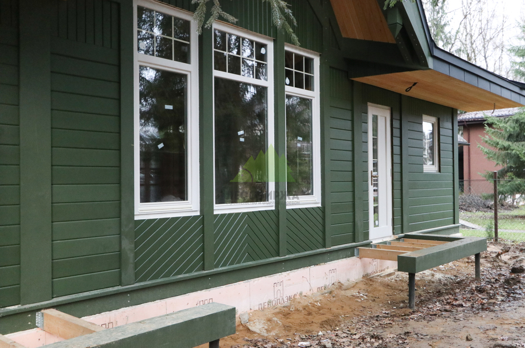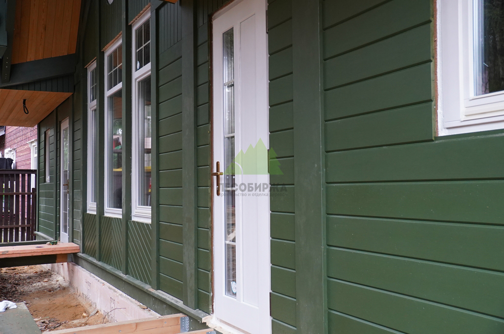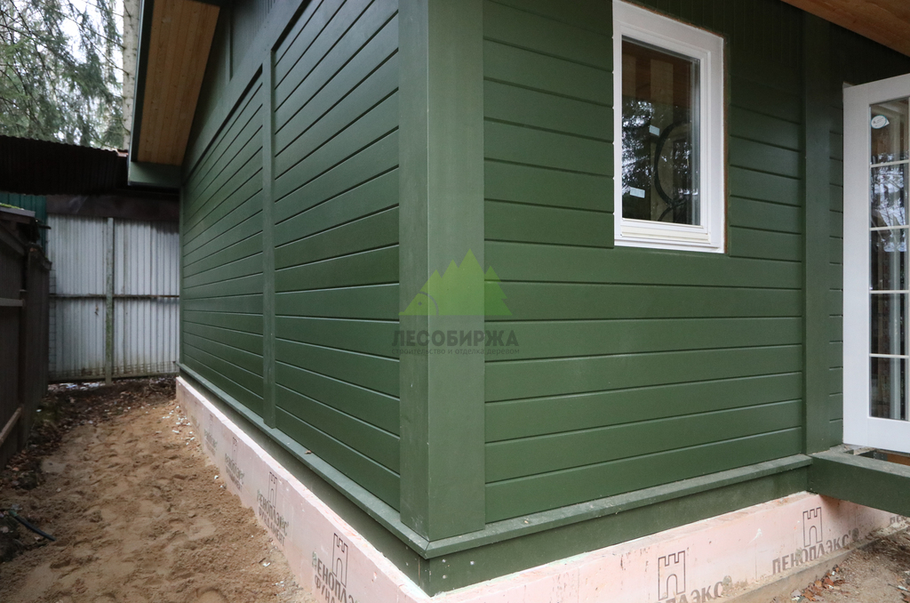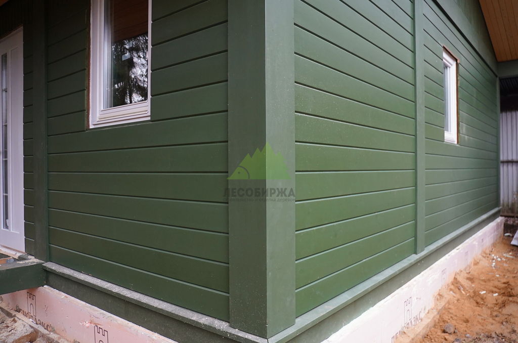Отделка фасада каркасной бани построенной по проекту Олега Карлсона