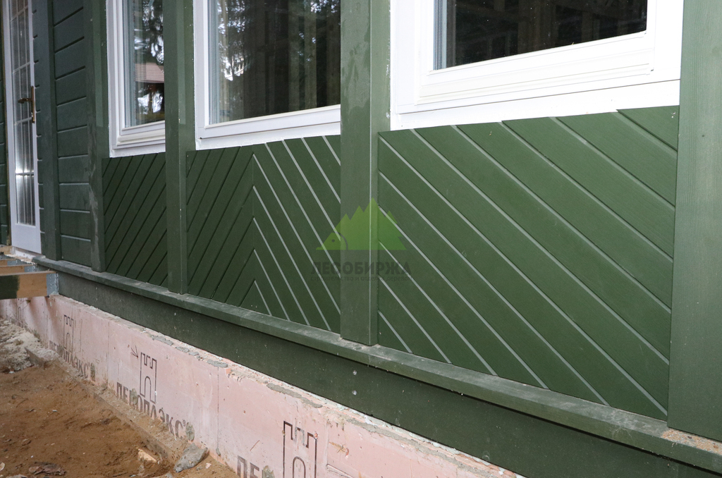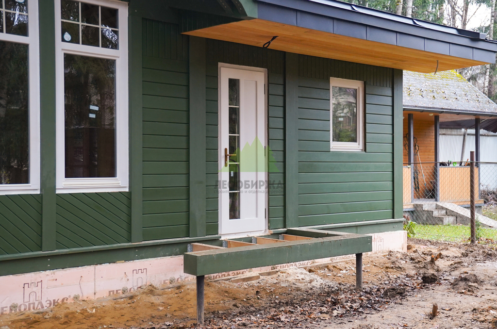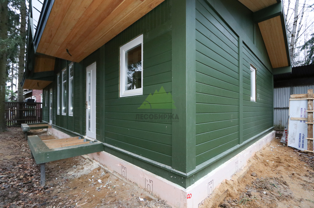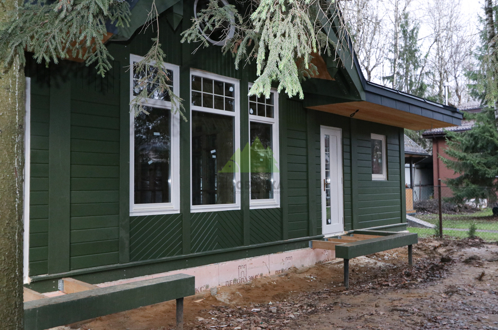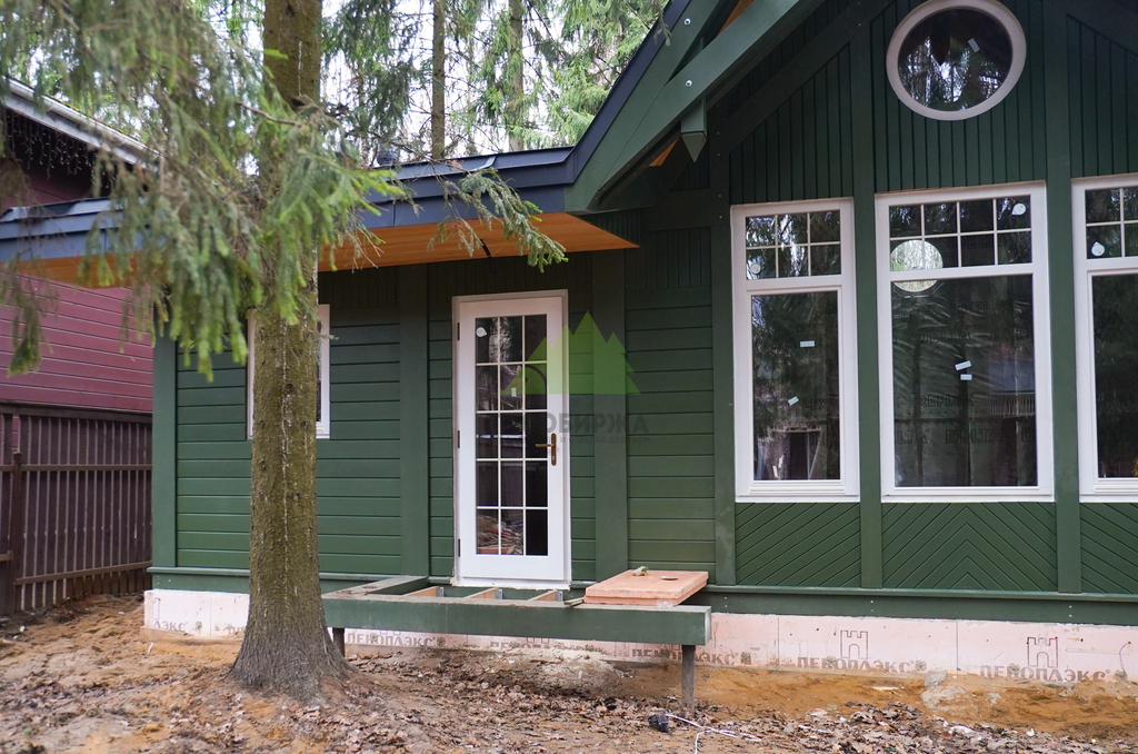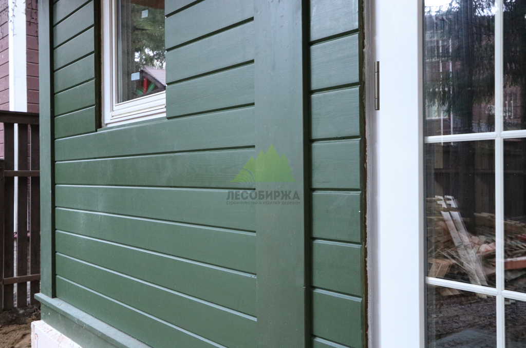 Отделка фасада каркасной бани построенной по проекту Олега Карлсона