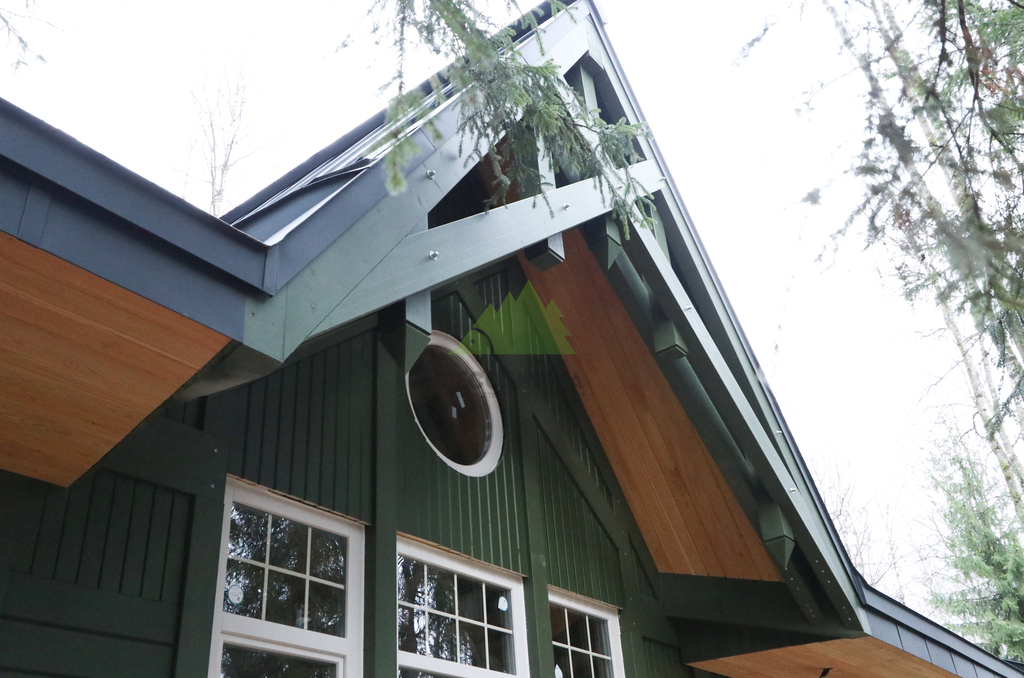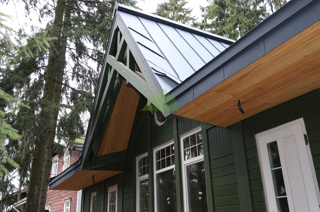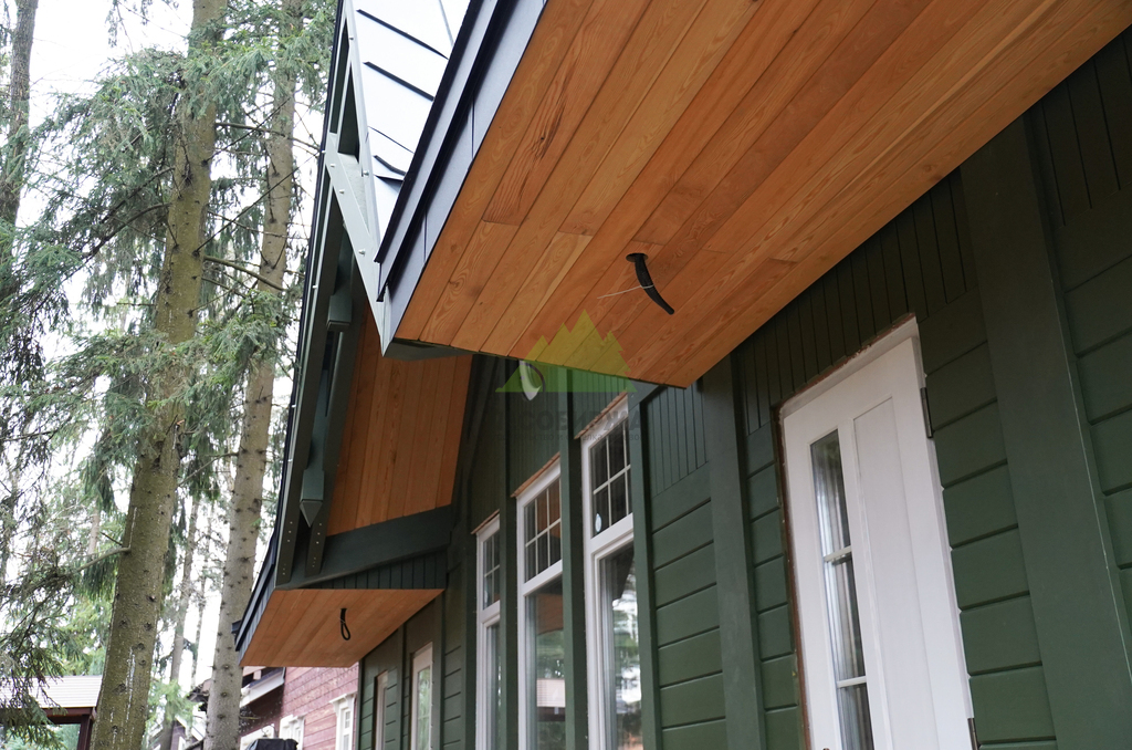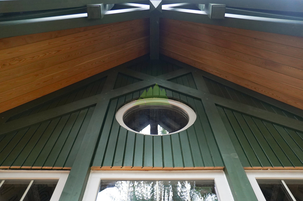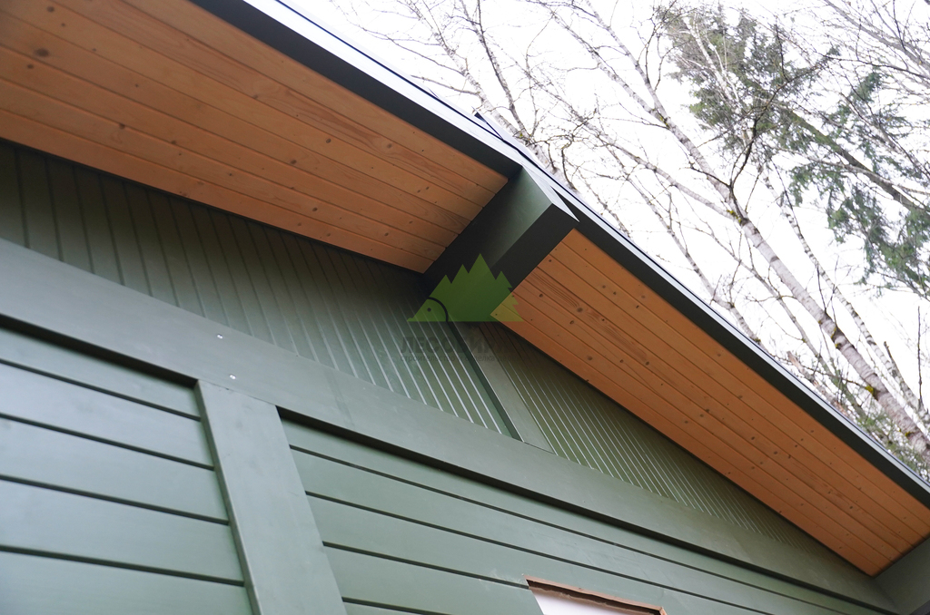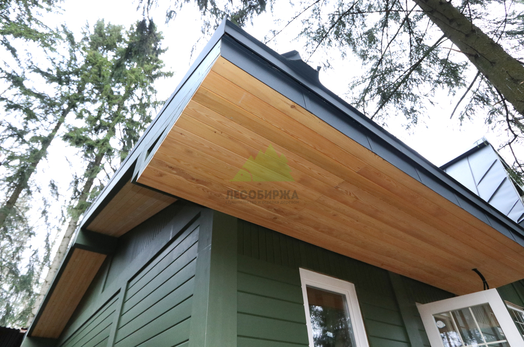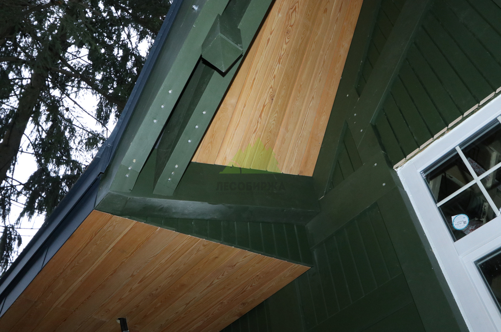 Кроме того, мы уделили внимание отделке свесов кровли, используя крашеный планкен из лиственницы. Этот выбор не только улучшил внешний вид кровли, но и обеспечил дополнительную защиту от внешних воздействий, продлевая срок службы конструкции.