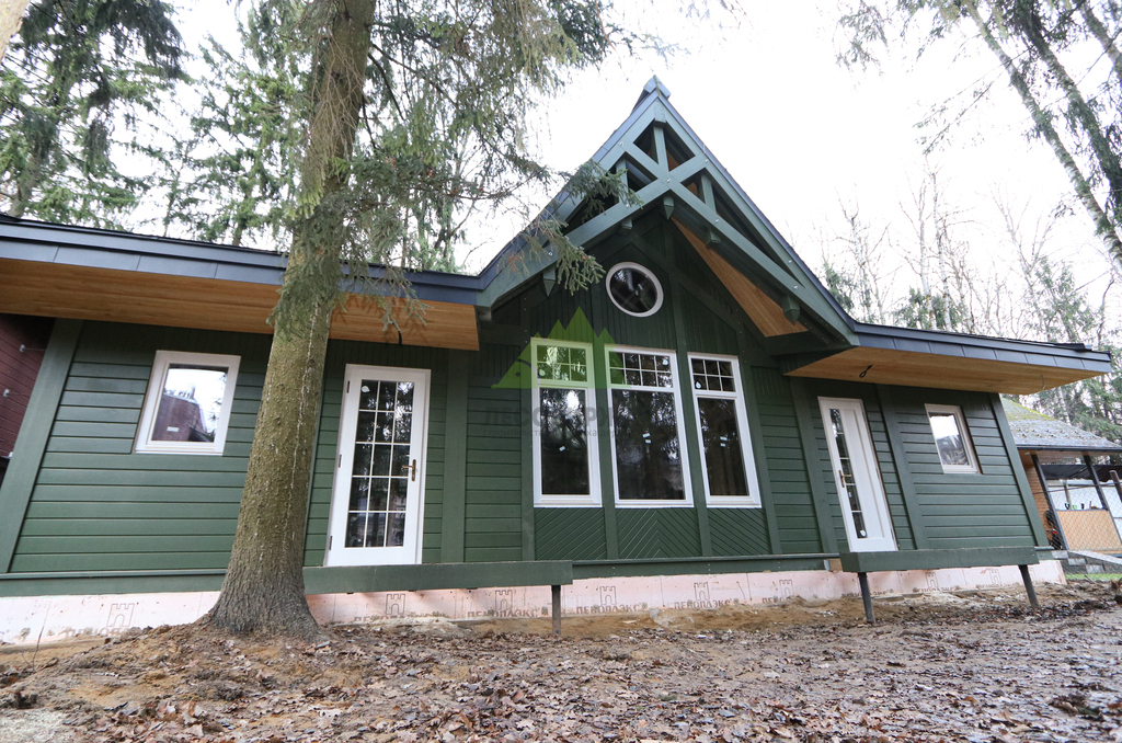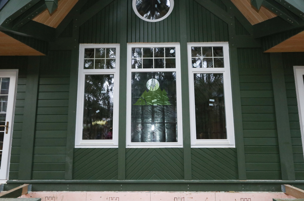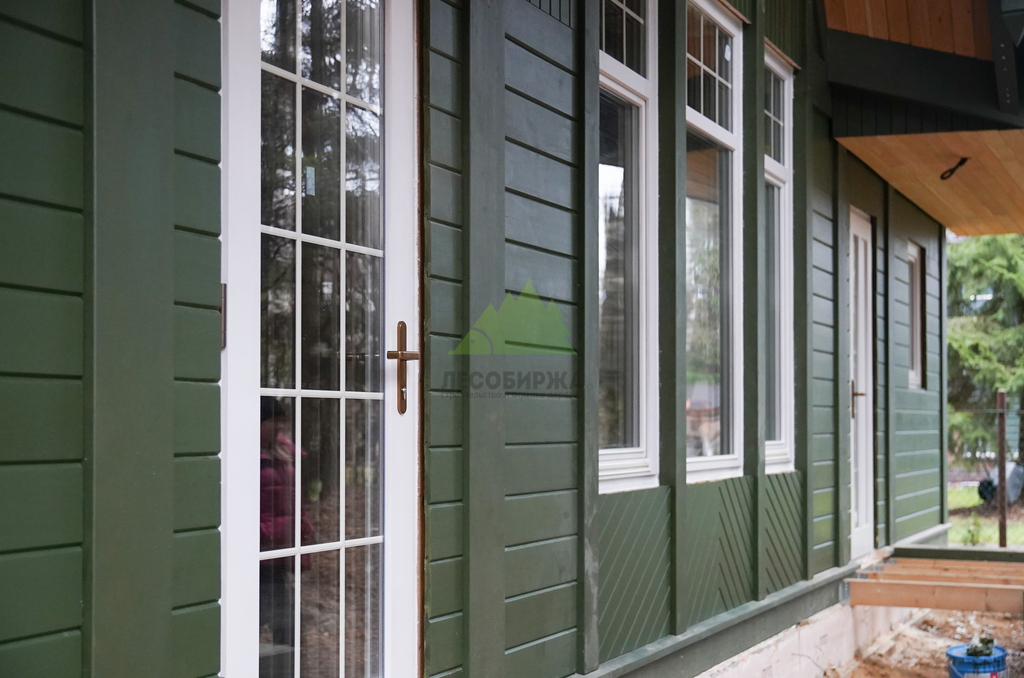 Для реализации проекта архитектора Олега Карлсона мы с особым вниманием подошли к каждому этапу отделки фасада бани, чтобы достичь совершенства и подчеркнуть уникальный стиль. Основным материалом для этой задачи стала имитация бруса “карельский профиль”, которая была предварительно окрашена на нашем производстве с использованием укрывной краски Vinha Tikkurila.