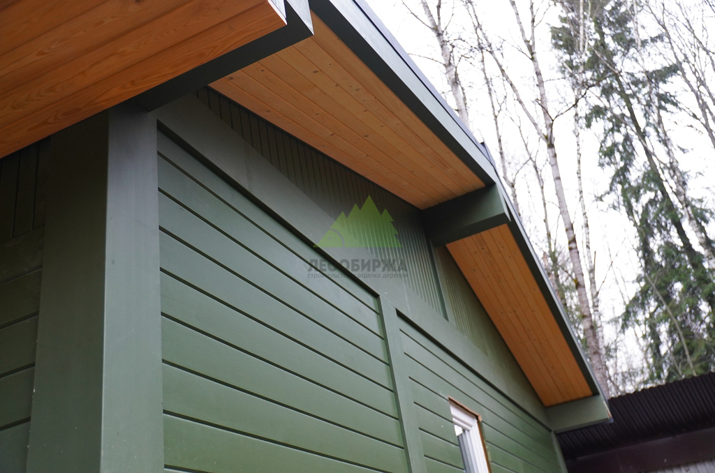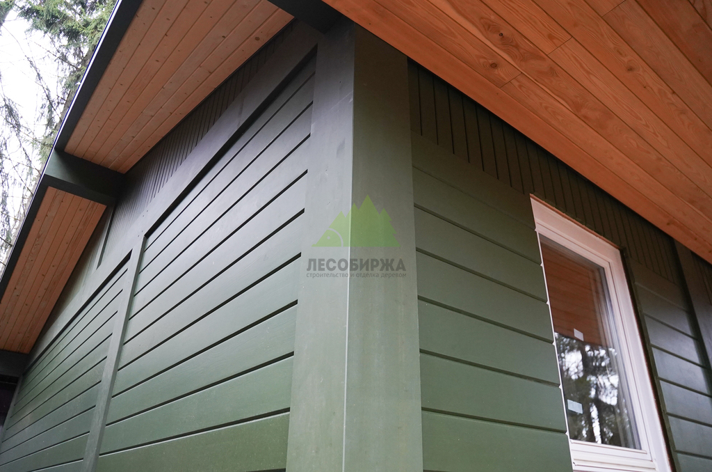 К нам обратились заказчики с задачей по отделке фасада каркасной бани. Работы предполагалось провести с утеплением 150 мм имитацией бруса карельский профиль. А так же выполнить отделку свесов кровли планкеном из лиственницы. Все материалы должны быть смонтированы на скрытый крепеж и окрашены на производстве. Основные характеристики объекта: