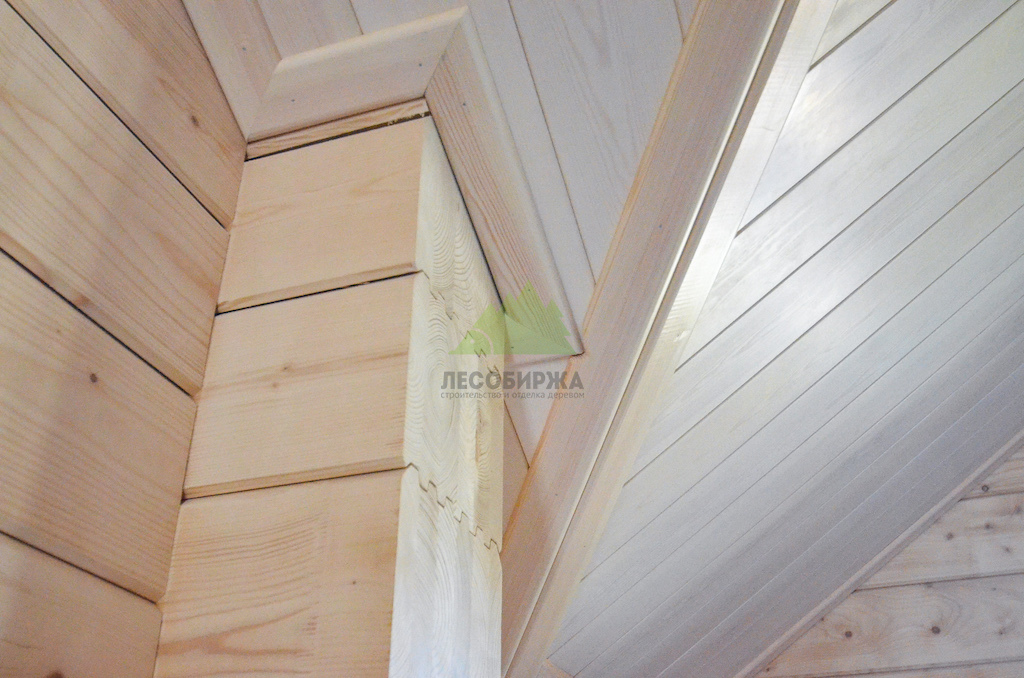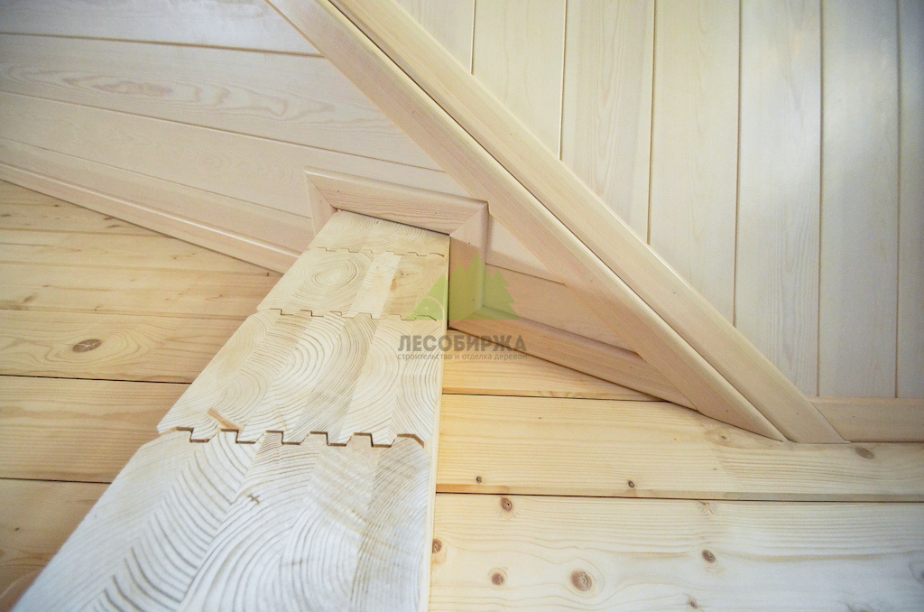 - Компенсационные пазы: На внутренней стороне панелей выполнены специальные технологические пропилы. Эти пазы служат для снятия внутреннего напряжения древесины, предотвращая деформацию и растрескивание при изменениях температуры и влажности, что особенно важно для условий Ленинградской области.