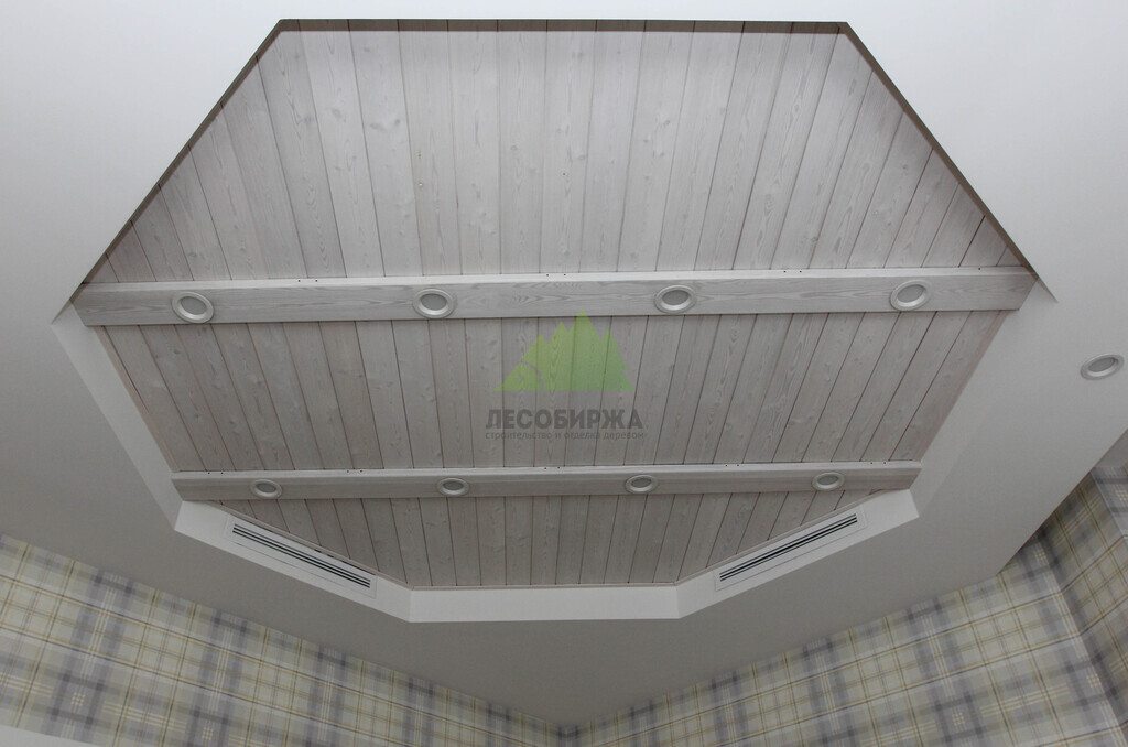 Для реализации проекта клиентки мы выбрали вагонку "Штиль" из лиственницы сорта АВ. Этот сорт отличается оптимальным соотношением цены и качества. Несколько небольших, аккуратных сучков на доске лишь подчеркивают натуральное происхождение материала, воспринимаясь не как дефект, а как оригинальное украшение, придающее дереву живую фактуру. Качество нашей вагонки – это предмет особой гордости для Лесобиржи-Спб. Идеальная строжка, минимальная и стабильная влажность, строго выдержанная геометрия – все это гарантирует безупречный результат монтажа и долговечность готовой отделки. Однако ключевым этапом в этом проекте стала профессиональная покраска вагонки, которую мы осуществили в нашем собственном малярном цехе. Это позволяет нам не только контролировать каждый этап процесса, но и добиваться идеального результата. Наши специалисты тщательно обрабатывают все грани вагонки, обеспечивая качественное и равномерное прокрашивание даже таких труднодоступных элементов, как "шип" и "паз". Это критически важно, ведь качественно прокрашенные соединительные элементы исключают появление непрокрашенных полос, если со временем древесина даст естественную микроусадку. Более того, после распила торцы досок также были покрыты защитным составом, что увеличивает их влагостойкость и продлевает срок службы всей конструкции. Такая комплексная и продуманная обработка – залог того, что отделка будет радовать глаз многие годы, сохраняя свой первозданный вид.