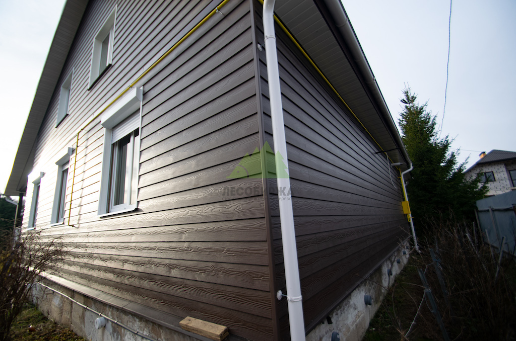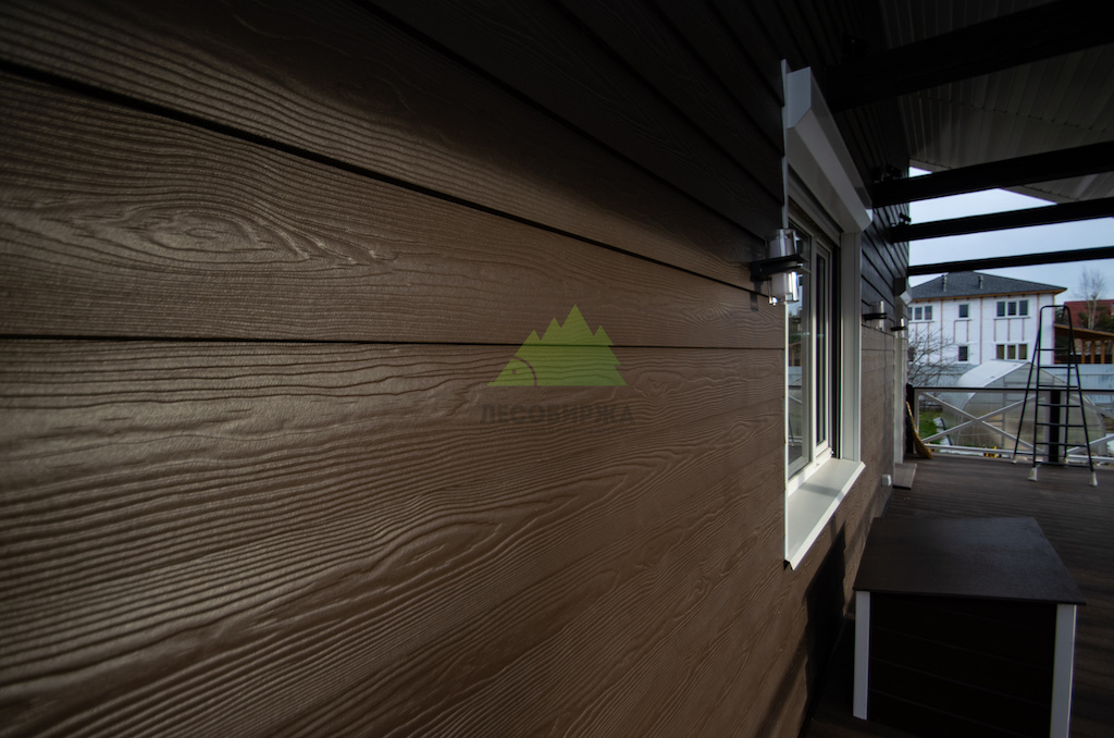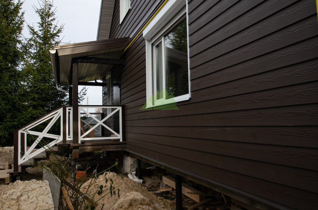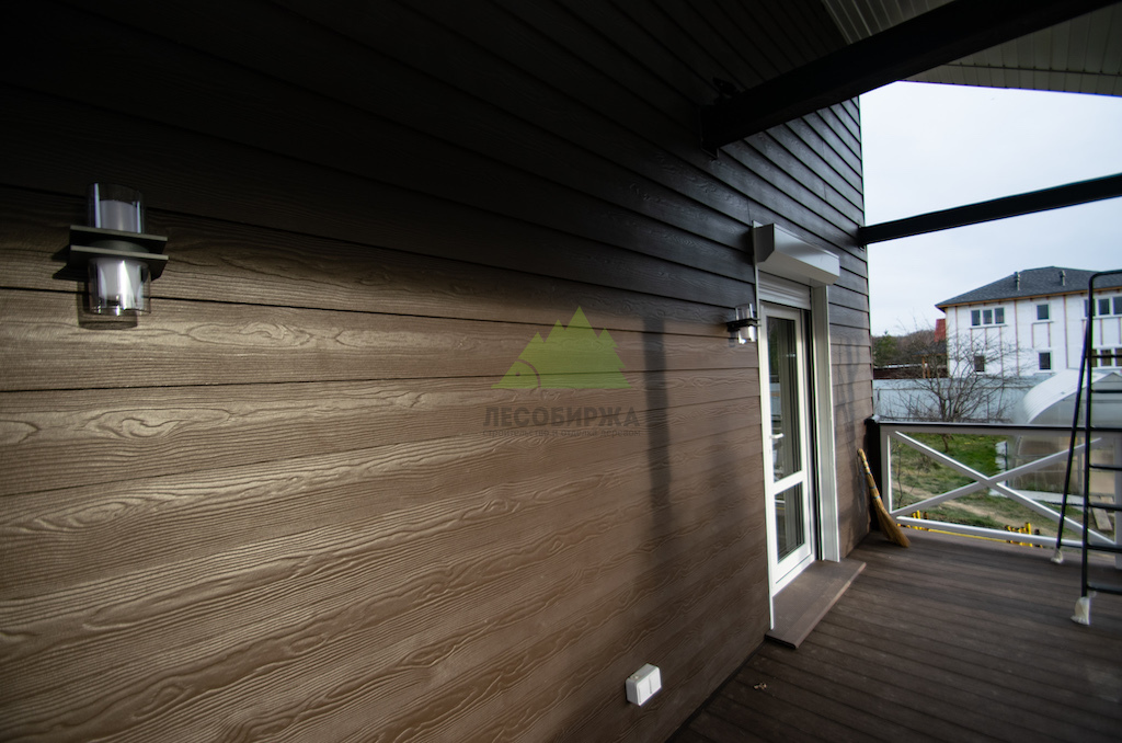В результате тщательного анализа и демонстрации образцов, выбор заказчика пал на фиброцементный сайдинг CEDRAL, продукт известного мирового производителя из Бельгии. Это решение было продиктовано как стремлением к долговечности и надежности, так и желанием придать фасаду благородный, выразительный вид. Мы предложили облицовочные панели серии Wood, которые в полной мере имитируют природную текстуру кедра, передавая изящный узор годичных колец. Особое внимание уделили выбору цвета: насыщенный коричневый оттенок, соответствующий С21 по международной системе подбора, напомнил дорогой шоколад, придав дому изысканный и респектабельный облик. Этот цвет не только подчеркнул архитектурные особенности строения, но и органично вписался в окружающий природный ландшафт Киварина хутора.