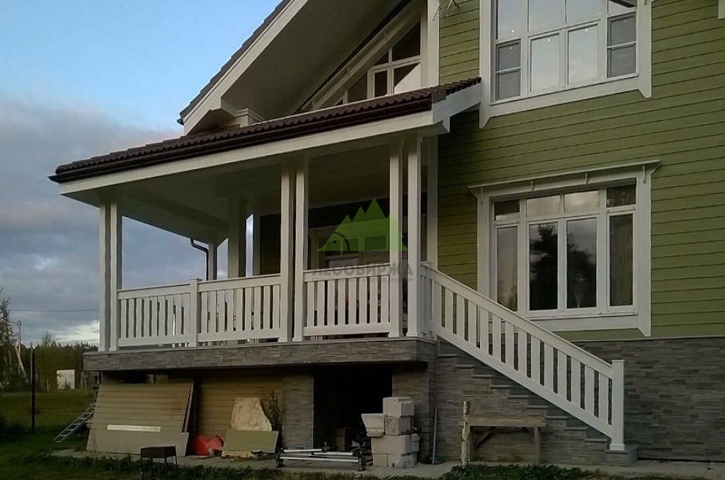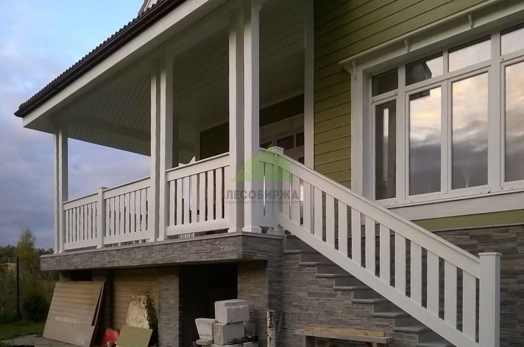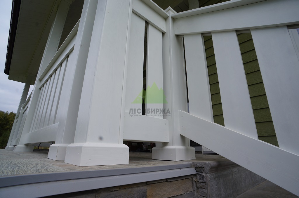 Проект включал также приятный бонус для владельцев дома: мы изготовили и установили новые ограждения для террасы из лиственницы. Эти ограждения, произведенные в нашем собственном столярном цеху, отличаются высокой прочностью и надежностью. Они были покрашены в малярном цеху Лесобиржи-Спб составом Vinha Tikkurila (цвет 9010 RAL), что гарантирует их долговечность и устойчивость к внешним факторам. В результате, терраса не только стала безопаснее, но и приобрела завершенный, стильный вид, идеально дополняющий обновленный фасад.