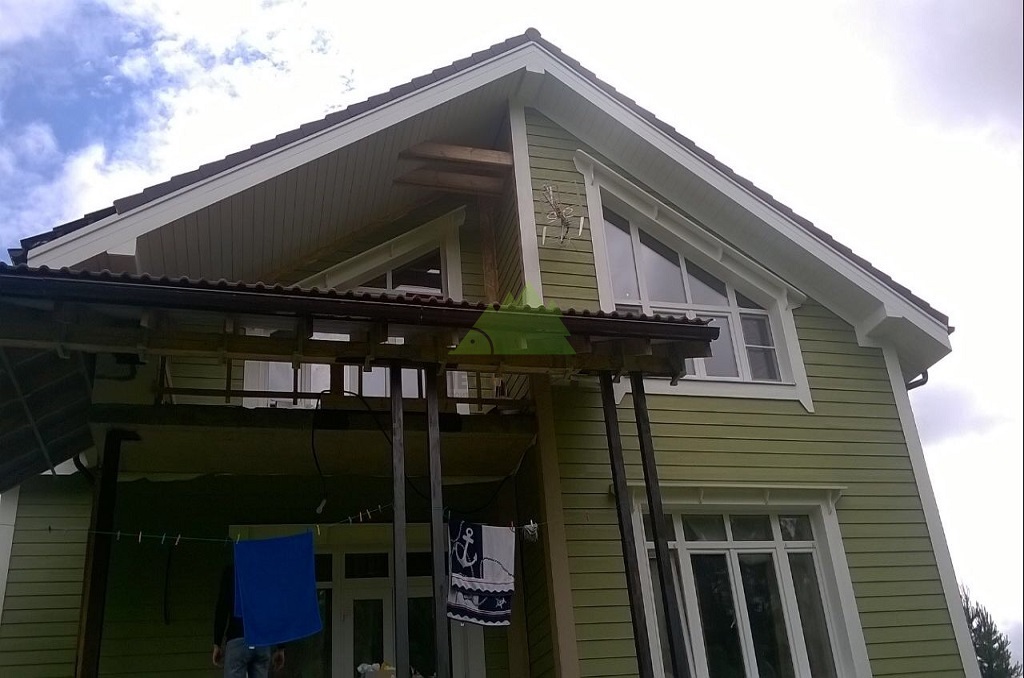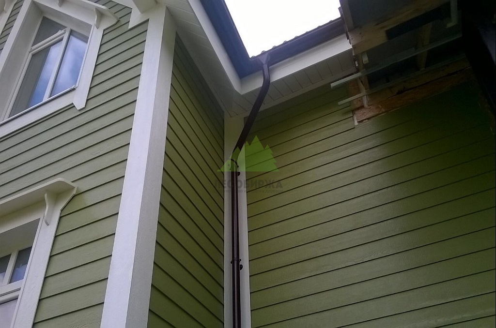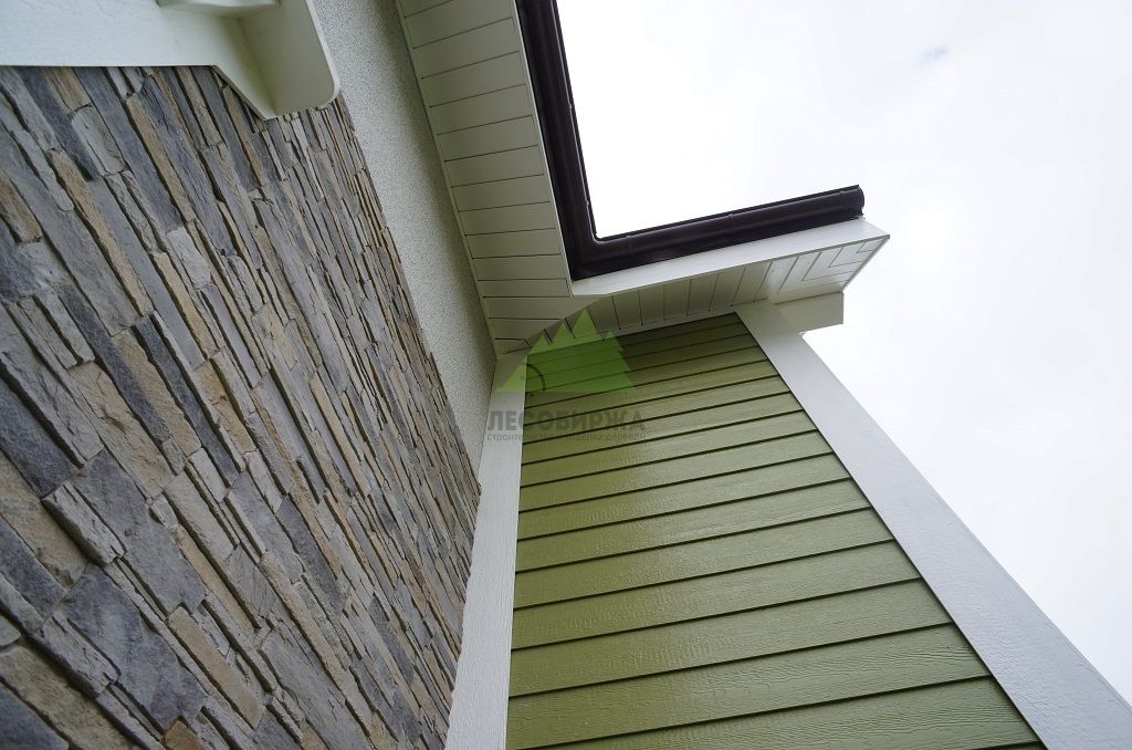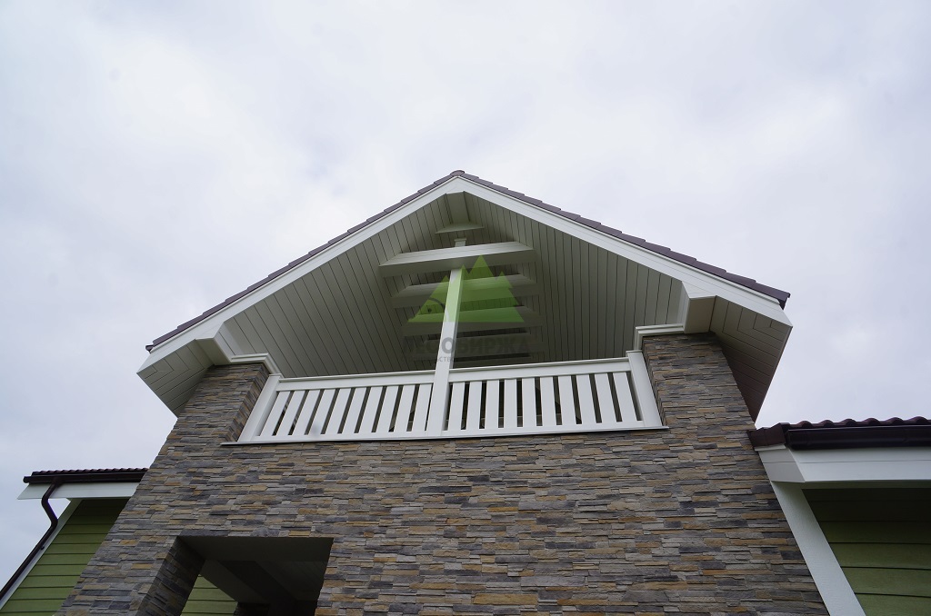 - Декоративные элементы: Для завершенности и эстетической привлекательности фасада, мы использовали дополнительные декоративные элементы в виде угловых накладок, также выполненных из SmartSide. Эти накладки не только выполняют декоративную функцию, придавая углам дома строгий и аккуратный вид, но и надежно защищают места стыков от внешних воздействий, продлевая срок службы всей конструкции.