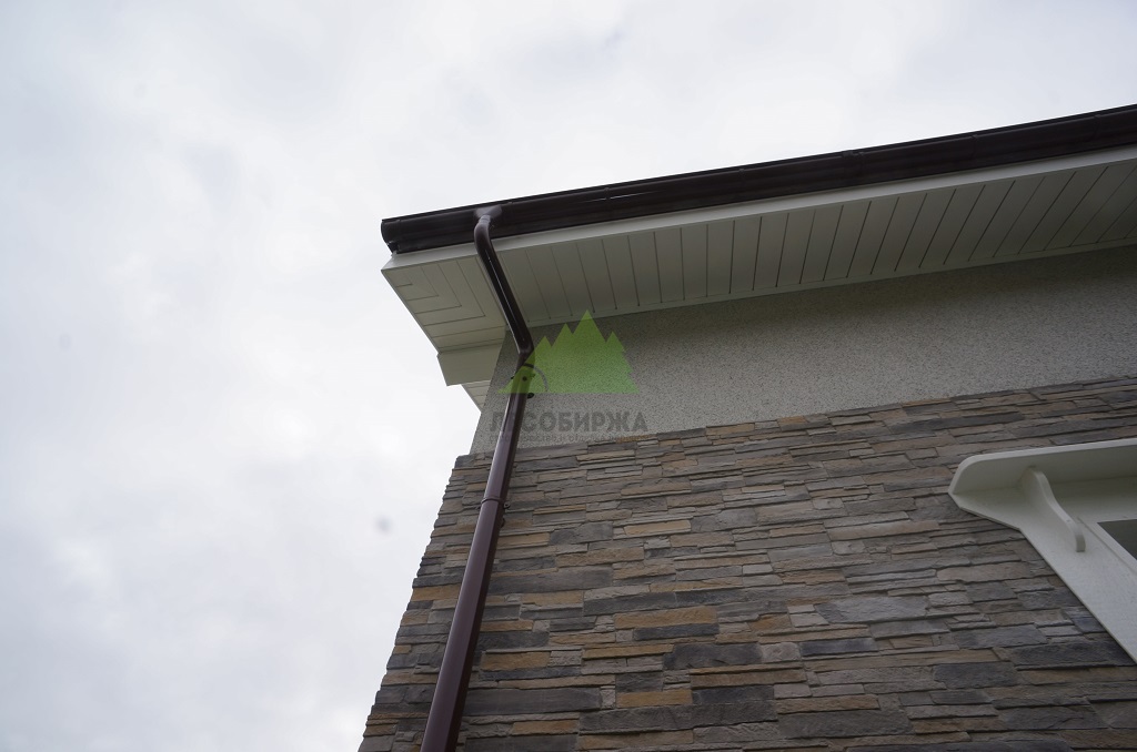 Чтобы фасад дома не выглядел монотонно, мы разработали комбинированное решение, сочетая сайдинг SmartSide с искусственным камнем. Это позволило придать строению оригинальный и изысканный вид, гармонично вписав его в природный ландшафт. Для обрамления окон были изготовлены и установлены элегантные наличники из планкена – материала, отличающегося высокой прочностью и долговечностью. Отделка свесов кровли была выполнена нашим проверенным материалом – планкеном из лиственницы сорта "Прима". Лиственница зарекомендовала себя как чрезвычайно устойчивый к влаге и перепадам температур материал, который на протяжении многих лет сохраняет свои эстетические и прочностные характеристики.