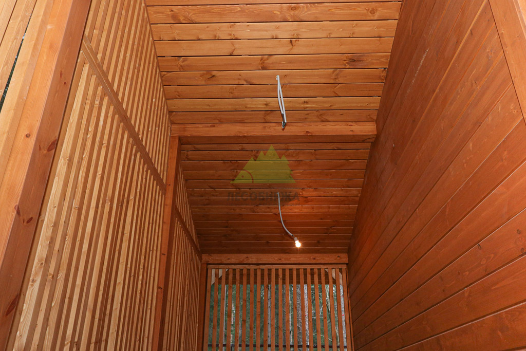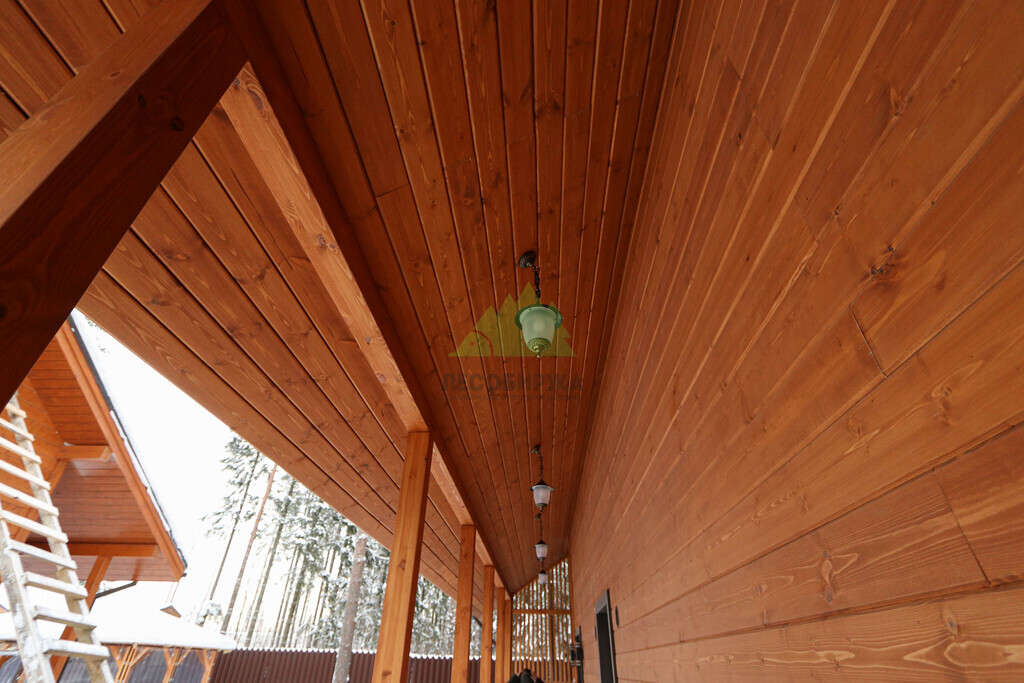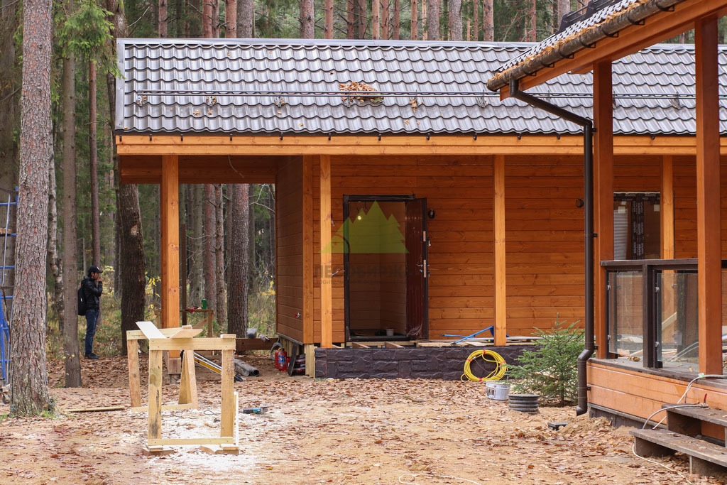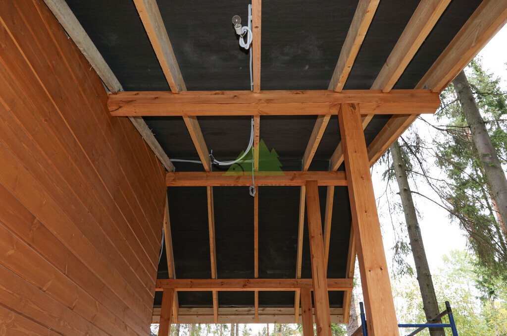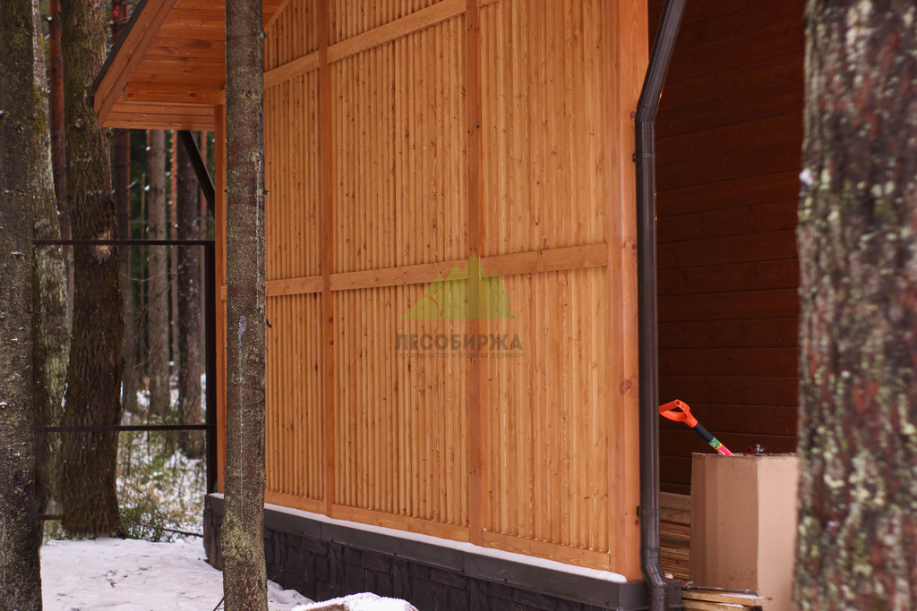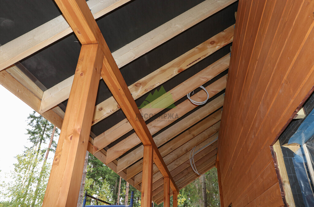 Наружная отделка (Имитация бруса, с подшивкой свесов кровли и потолка террасы и дровяника)