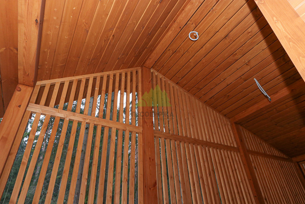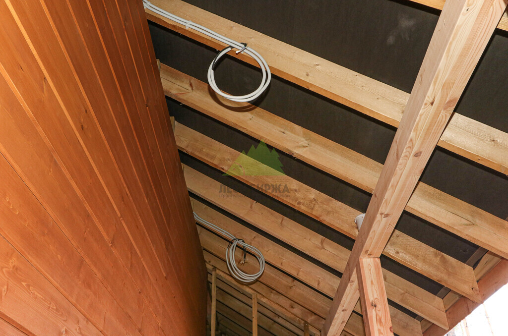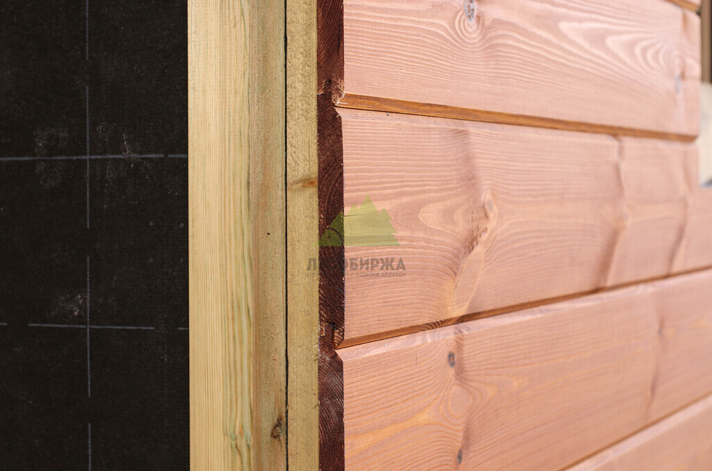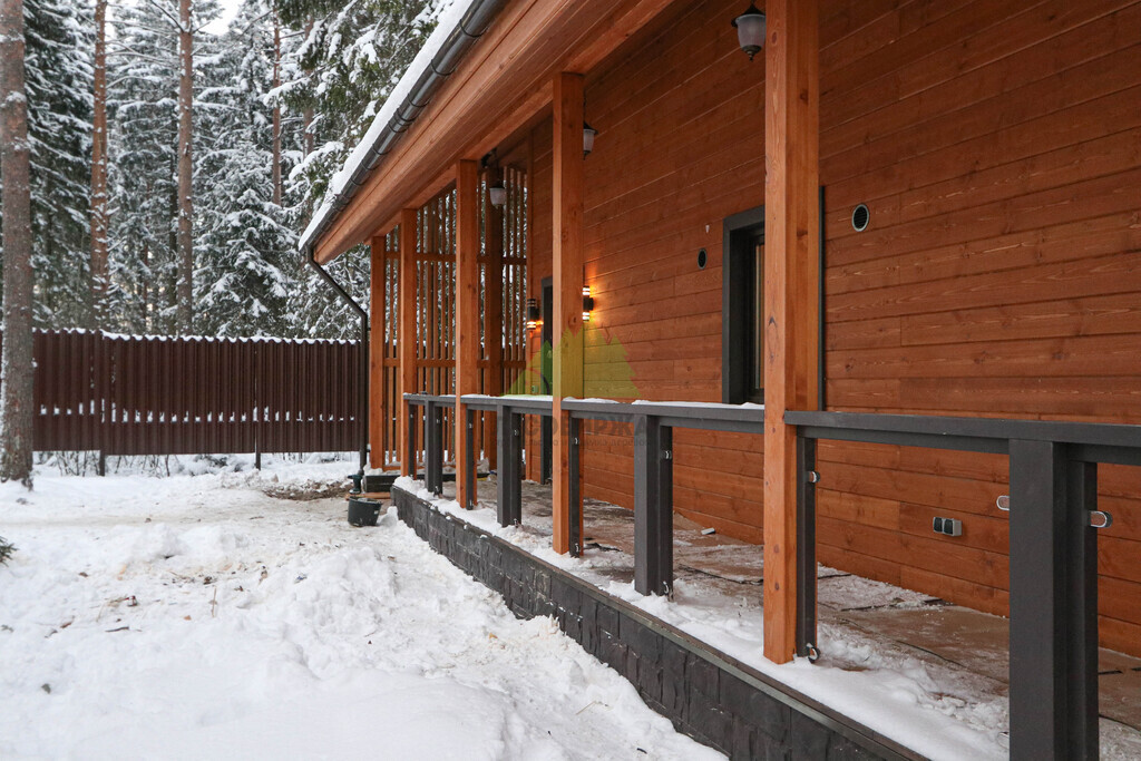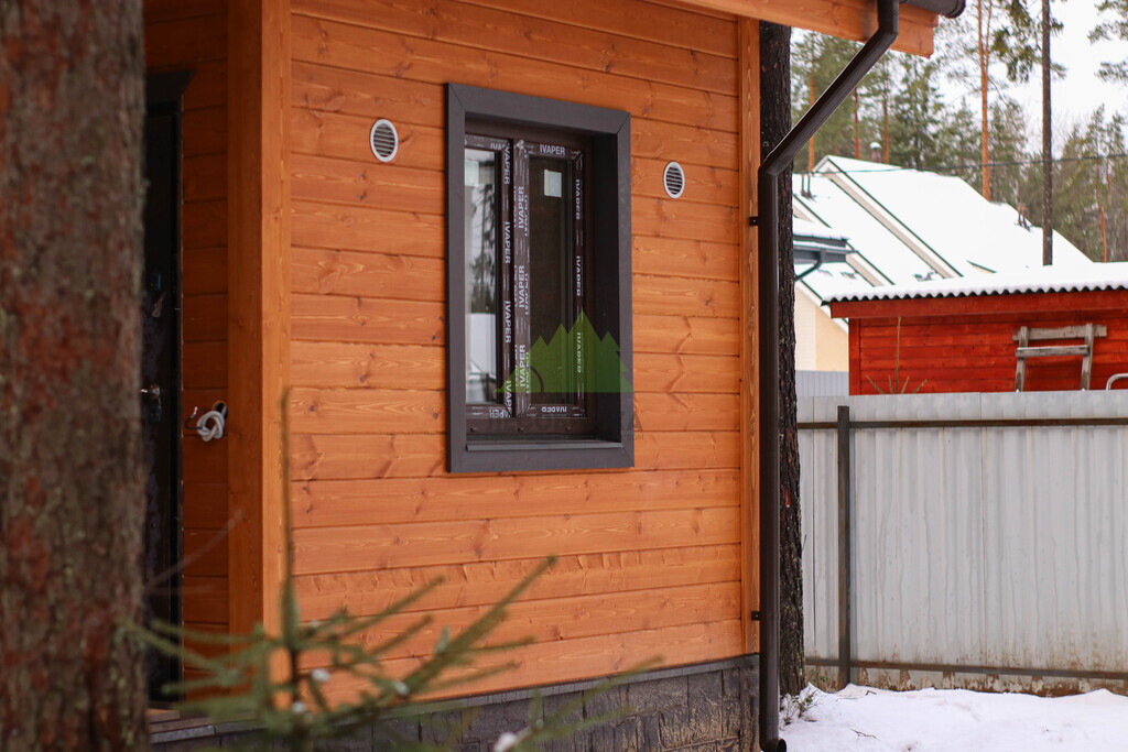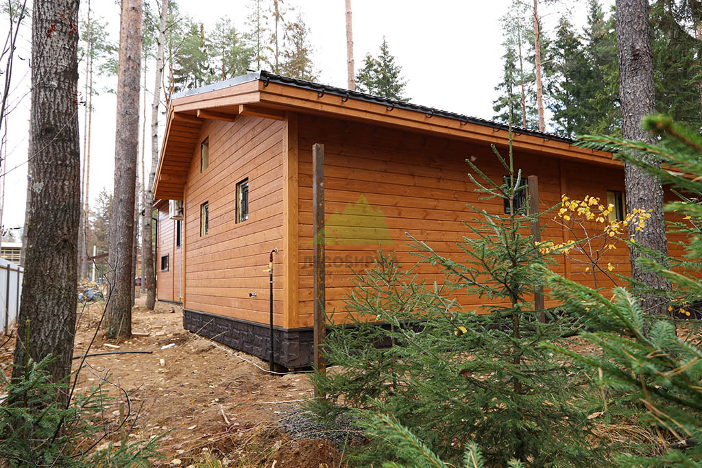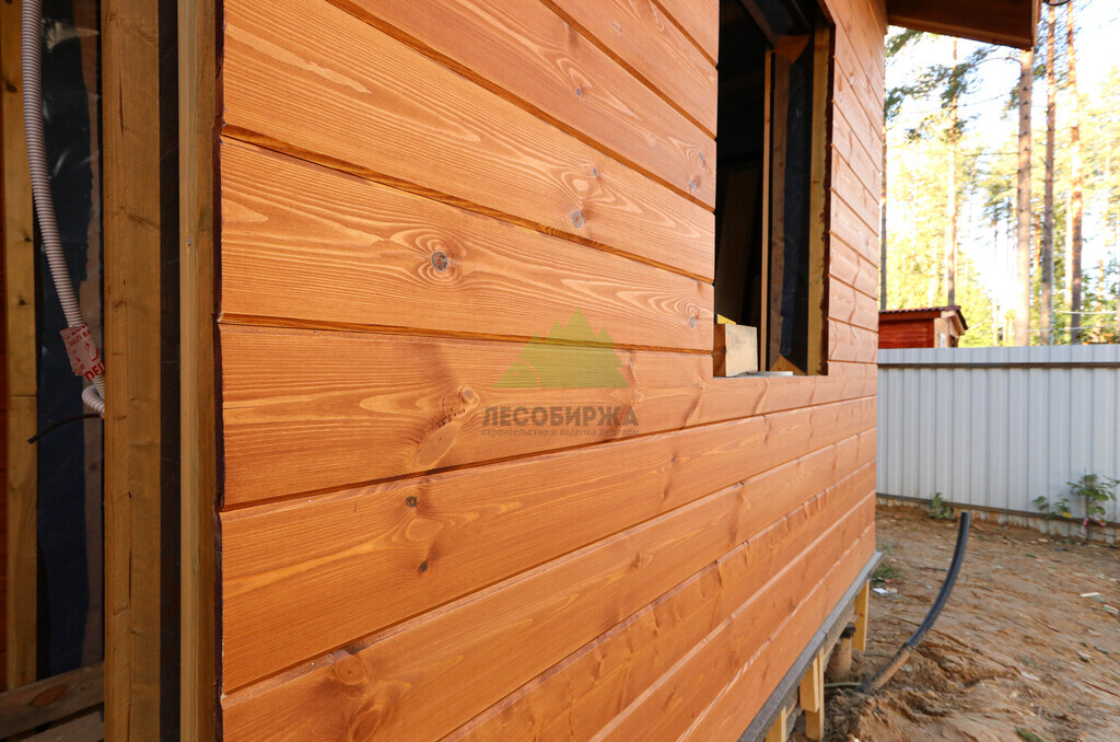 Наружная отделка (Имитация бруса, с подшивкой свесов кровли и потолка террасы и дровяника)