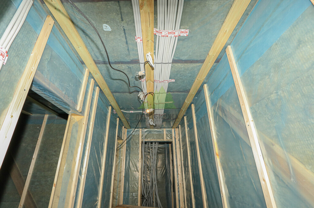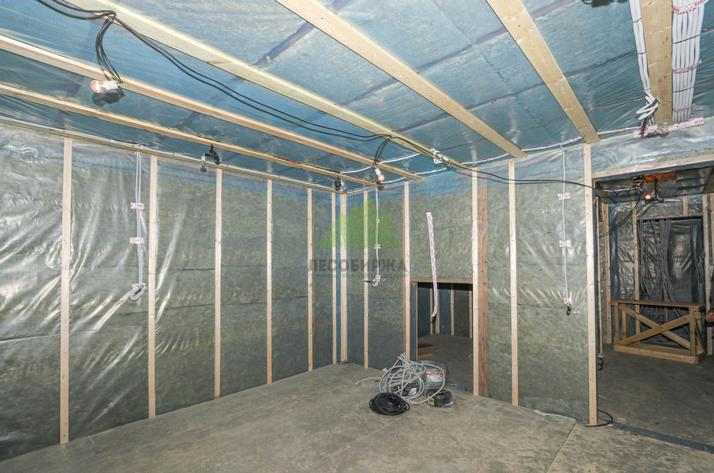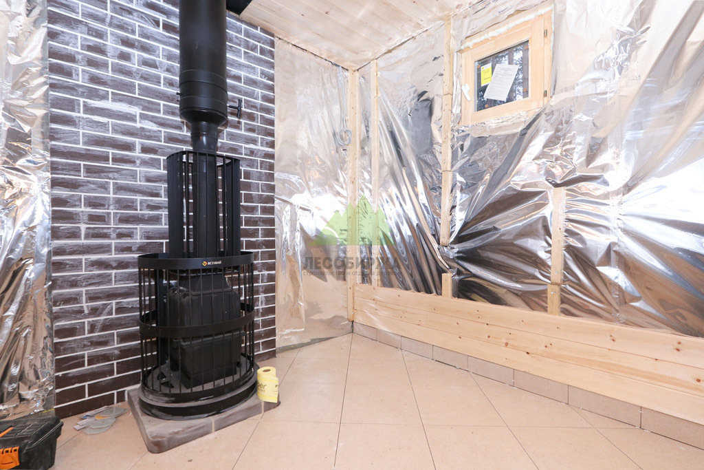 Для обеспечения максимальной энергоэффективности и комфорта, стены и перекрытия банного комплекса были тщательно утеплены многослойной системой. Внешние стены получили утеплитель высокой плотности, обеспечивающий превосходную теплоизоляцию, а внутренние перегородки – утеплитель для звукоизоляции. Применение трехслойной ветрозащитной мембраны снаружи и высококачественной пароизоляции внутри создало надежный тепловой контур. Это предотвращает потери тепла зимой, сохраняет прохладу летом и, что особенно важно для бани, защищает несущие конструкции от конденсата и влаги. Каждый шов и стык были герметизированы с максимальной тщательностью, что гарантирует отсутствие мостиков холода и сквозняков, позволяя бане быстро прогреваться и долго сохранять набранную температуру, значительно снижая эксплуатационные расходы. Клиент с первых дней отметил, насколько быстро и эффективно баня выходит на нужный режим, что стало важным показателем нашей работы.