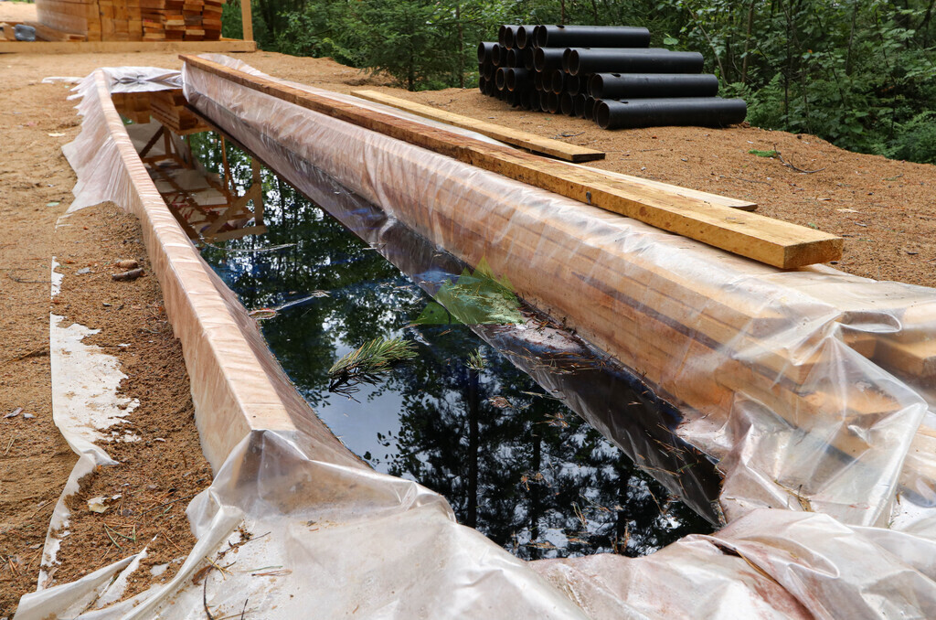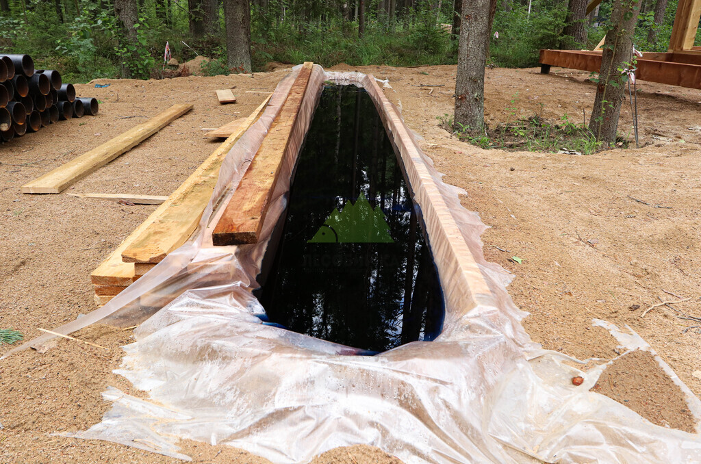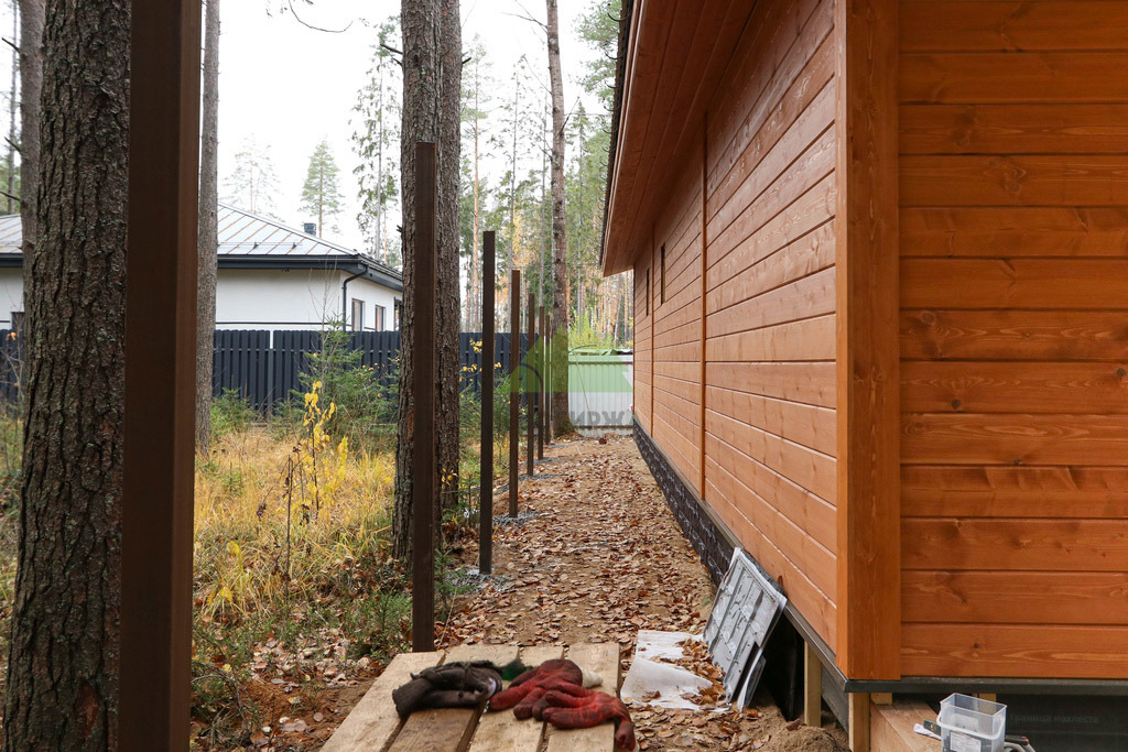 Наши специалисты приступили к работе с комплексного исследования участка. Прежде чем приступить к закладке фундамента, мы провели тщательную геодезическую разведку и анализ типа грунта, что является ключевым этапом для долговечности любой постройки, особенно в условиях разнообразных почв Ленинградской области. Выявленные характеристики позволили нам рекомендовать оптимальное решение — свайно-винтовой фундамент. Для данного проекта были выбраны высококачественные винтовые сваи диаметром 133 мм, которые вкручивались на глубину более двух метров. Этот выбор обеспечил не только исключительную прочность и устойчивость основания на долгие годы, но и минимизировал земляные работы, сохранив первозданный вид участка. Глубина заложения свай была точно рассчитана для надежной опоры конструкции, учитывая особенности местного климата и возможность пучения грунта. Каждая свая была установлена с ювелирной точностью, гарантируя идеальную горизонтальность и распределение нагрузки по всей площади банного комплекса.