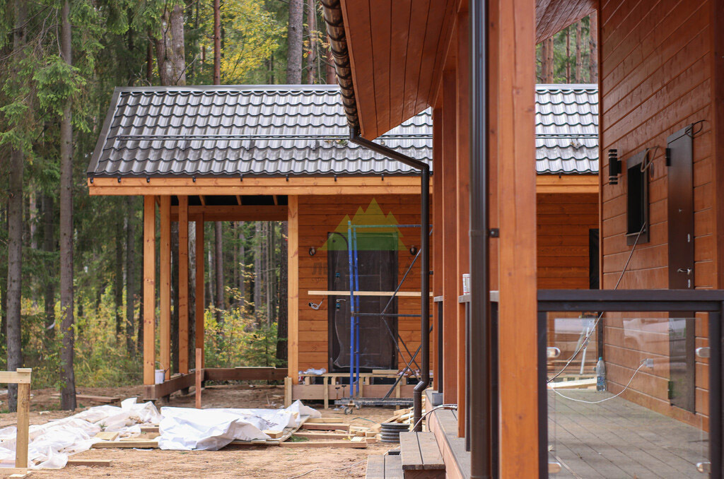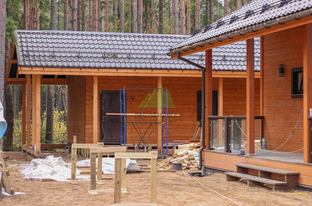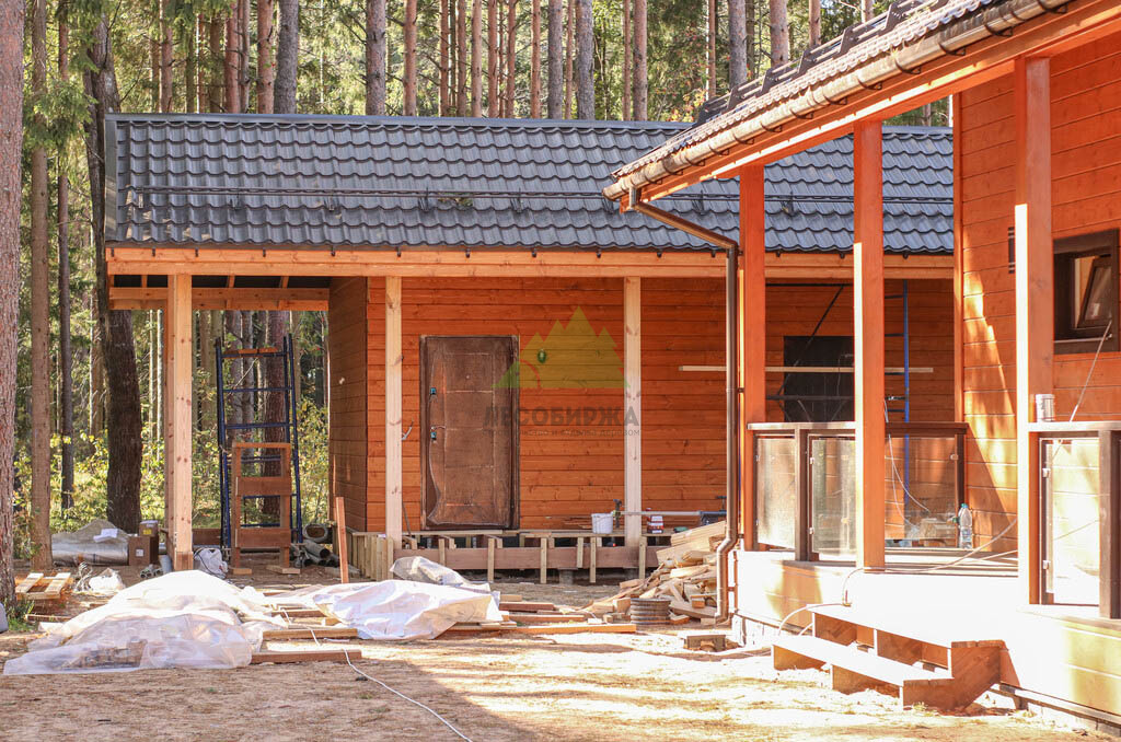 Кровля банного комплекса была выполнена из металлочерепицы, цвет и профиль которой были подобраны в полном соответствии с основным домом заказчика, создавая единый архитектурный ансамбль на участке. Это решение не только обеспечило эстетическую гармонию, но и предложило высокую долговечность, устойчивость к атмосферным осадкам и ветровым нагрузкам, характерным для климата Санкт-Петербурга и области. Подкровельная вентиляция, водосточная система и снегозадержатели также были интегрированы для обеспечения бесперебойной работы кровли в любых погодных условиях. В Лесобирже-Спб мы всегда предлагаем широкий выбор кровельных материалов и оттенков, чтобы каждый клиент мог найти идеальное решение, соответствующее его вкусу и бюджету.