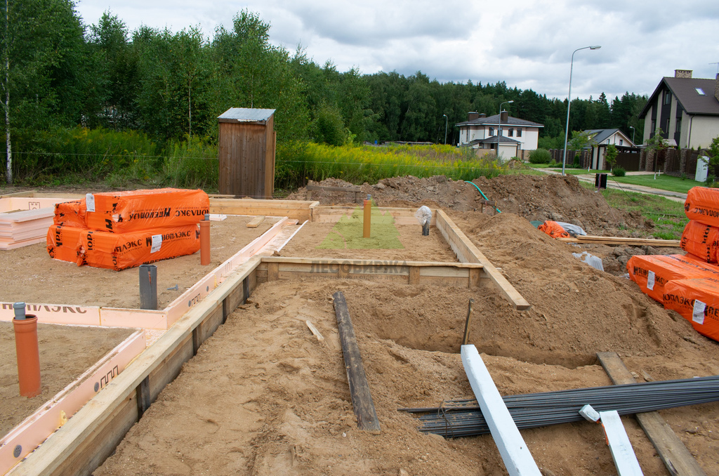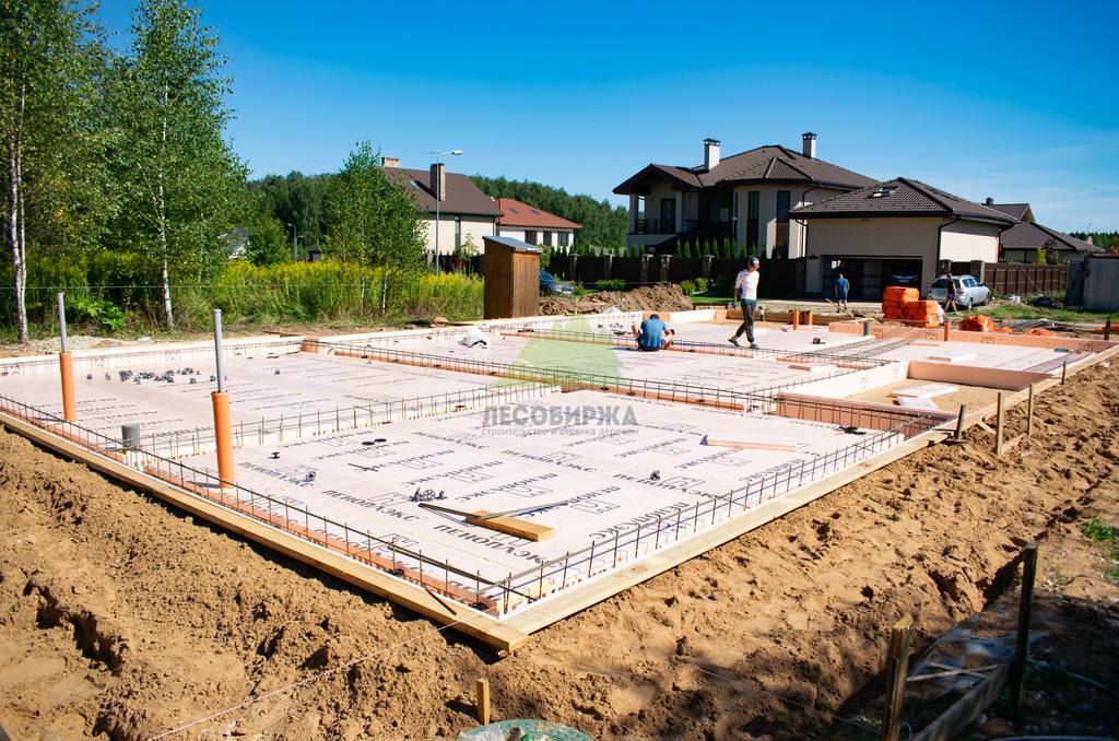 Следующим этапом стало устройство утепленной монолитной плиты. Мы использовали экструдированный пенополистирол "Пеноплэкс ГЕО" толщиной 50 мм, выбранный за его высокие теплоизоляционные свойства и устойчивость к влаге, что особенно актуально для региона Санкт-Петербурга и Ленинградской области с его переменчивым климатом. Опалубка для заливки плиты была тщательно смонтирована из обрезной доски сечением 150х40 мм, обеспечивая точность геометрических параметров. Армирование плиты – это ключевой аспект ее прочности. Ребра жесткости под несущими стенами были армированы согласно проекту, с применением арматуры класса А500С диаметрами 12, 8 и 6 мм. Основная сетка плиты выполнена из арматуры диаметром 12 мм с шагом 200 мм. Для вязки арматуры использовалась специальная вязальная проволока, гарантирующая надежное соединение всех элементов каркаса. После заливки бетона был строго выдержан технологический перерыв для полного набора прочности, что является неотъемлемым условием долговечности конструкции. Для исключения капиллярного подсоса влаги из грунта, который мог бы негативно сказаться на стеновых материалах, была выполнена высококачественная гидроизоляция с использованием материала "Гидроизол".