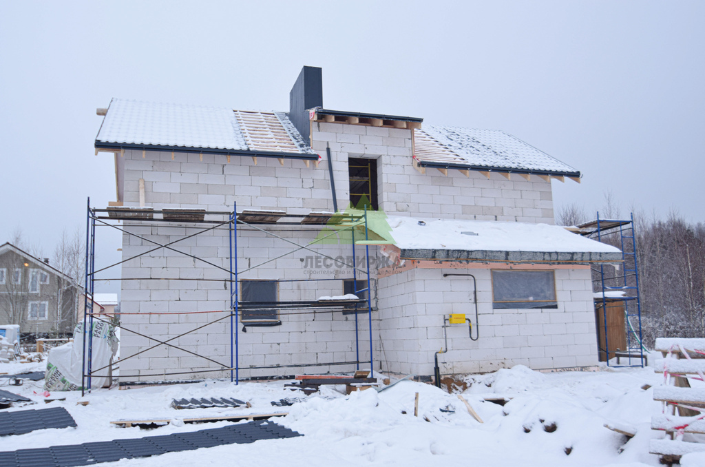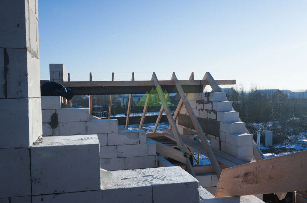 При возведении стен мы столкнулись с одним из ключевых моментов, демонстрирующих нашу приверженность качеству и клиентоориентированности. Изначально клиентом был выбран газосиликатный блок другого производителя, но при доставке на объект в Светлогорье мы обнаружили значительное количество боя и низкое качество материала. Лесобиржа-Спб незамедлительно проконсультировала заказчика, предложив переход на более дорогой, но значительно превосходящий по качеству и долговечности газобетонный блок "Bonolit" размером 625x400x250 мм. Это решение было принято совместно, и дальнейшее строительство велось исключительно с использованием блоков "Bonolit" и специализированного клея того же производителя. Первый ряд газосиликатного блока был уложен на пескобетон М300, обеспечивая идеальную ровность и прочность основания. Межрядное армирование стен выполнялось строго через каждые три ряда, с использованием арматуры класса А500С в два ряда, что существенно увеличивает несущую способность и устойчивость конструкции к нагрузкам. Для формирования оконных и дверных проемов использовались U-образные блоки "Bonolit", которые обеспечивают однородность материала стены и исключают мостики холода. Армирование междуэтажного распределительного монолитного пояса было выполнено по проекту, с использованием прочных каркасов, что гарантирует равномерное распределение нагрузки от верхних этажей и кровли.