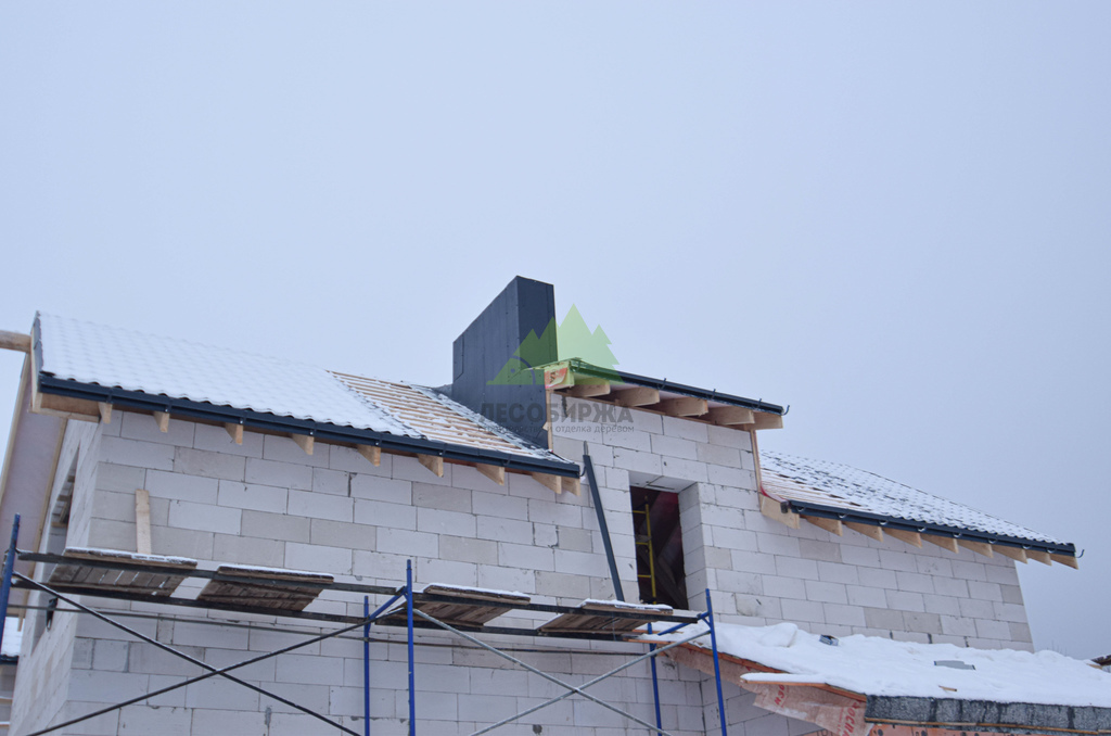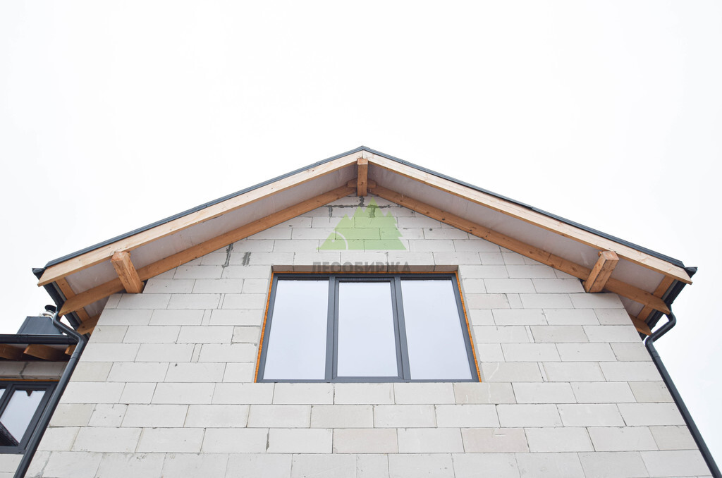 Кровля дуплекса представляет собой сложную многоскатную конструкцию с четырьмя ендовами, что придает зданию выразительный архитектурный облик и требует высокого мастерства при монтаже. Наши кровельщики Лесобиржи-Спб использовали наслонные стропила из обрезной доски сечением 50х200 мм, опирающиеся на мауэрлат и мощный коньковый прогон сечением 150х150 мм. Особенностью проекта стало использование металлического двутавра №24 в качестве конькового прогона, который был установлен на газобетон через распределительную монолитную подушку. Это уникальное инженерное решение было применено в связи с необходимостью перекрытия пролетов длиной более 6 метров. Применение неразрезной схемы стропильной системы позволило уменьшить высоту проката, оптимизируя конструкцию и снижая общую нагрузку на стены. Выбор обрезной антисептированной доски 2-го сорта для стропильной системы был обусловлен технологическим перерывом перед последующей чистовой отделкой и утеплением мансардных участков крыши, что позволило оптимально распределить бюджет проекта без ущерба для прочности и долговечности. Для обеспечения эффективного вентзазора под кровельным покрытием, необходимого для отведения влаги и предотвращения образования конденсата, был использован антисептированный брусок 50х50 мм и обрешетка 100х25 мм. В качестве гидроветрозащитной мембраны была применена супердиффузионная мембрана "Ютавек 115". Этот материал гарантирует максимальную защиту утеплителя от намокания за счет капель конденсата, образующихся на внутренней поверхности кровли, и обеспечивает эффективное отведение паров влаги из подкровельного пространства. Финальным штрихом стало устройство кровельного настила из металлочерепицы "Unikma" профиля M28 в стильном матовом цвете RAL 7024, который идеально вписался в ландшафт Светлогорья.