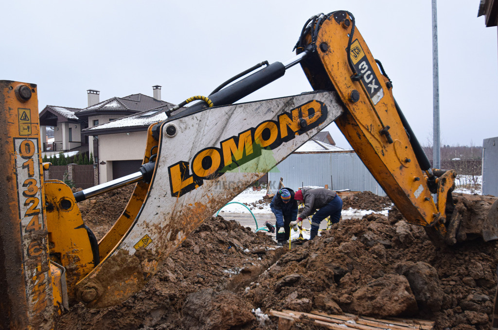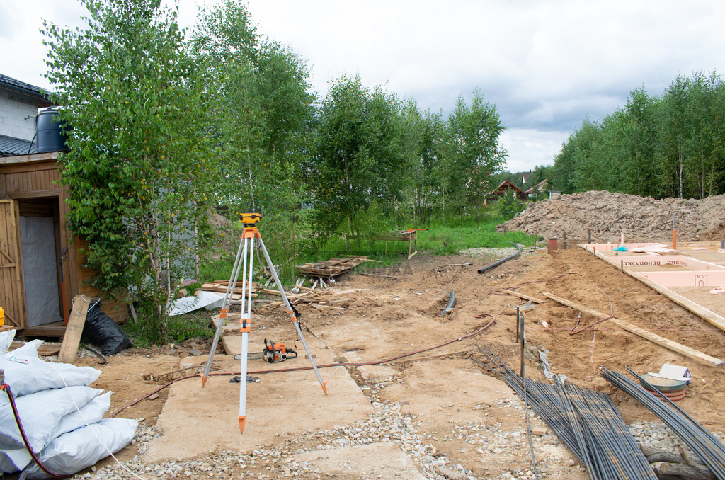 Участок в Светлогорье имел свои особенности – выраженный уклон, создающий перепад высот в пятне застройки до 50 см. Это потребовало от наших инженеров и строителей особого внимания к дренажной системе и устройству фундамента. Мы начали с тщательной выторфовки плодородного слоя на глубину от 30 до 80 см, чтобы обеспечить стабильное основание. Особое внимание было уделено комплексному устройству дренажа, который закладывался параллельно с подготовкой под фундамент. По периметру котлована был предусмотрен дренаж подушки с использованием высококачественной трубы диаметром 110 мм, обернутой в прочный геотекстиль. Вся дренажная система была спроектирована и выполнена с оптимальным уклоном, обеспечивающим эффективный отвод воды в центральный дренажный коллектор диаметром 315 мм. Это решение критически важно для предотвращения скопления влаги под фундаментом и сохранения его целостности на долгие годы. Для обеспечения максимальной надежности дно котлована было устлано иглопробивным геотекстилем плотностью 250 г/м², который также сформировал "рубашку" для дренажа. Заполнение дренажной системы выполнялось гравием фракции 20-40 мм, создавая эффективный фильтрующий слой.