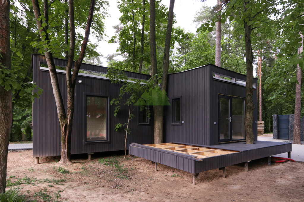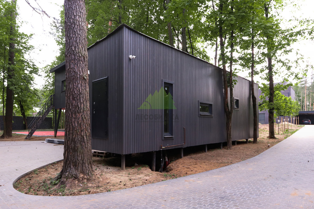 Принятое нашими архитекторами и монтажниками решение монтировать планкен вертикально, а не горизонтально, добавило строению особую изюминку. Этот прием визуально вытягивает фасад, делая его более легким и динамичным, а также способствует еще более эффектному слиянию с вертикальными стволами деревьев. В результате дом выглядит не просто частью леса, а его органичным элементом, излучающим некую таинственность и загадочность. Это создает уникальную атмосферу уединения и комфорта, которая, несомненно, будет оценена каждым гостем. Мы убеждены, что архитектура должна вдохновлять, и этот проект – яркое тому подтверждение.