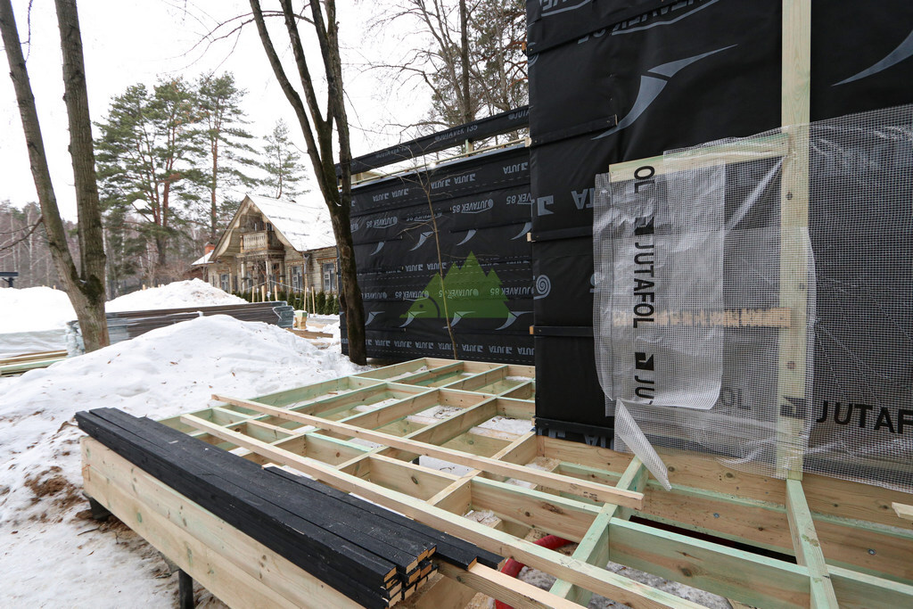 Для достижения безупречного внешнего вида и обеспечения долговечности фасада, наши специалисты применили ряд технологических решений, которые, хотя и остаются скрытыми от глаз, играют критически важную роль. Одним из таких "секретов" является использование окрашенных в тон планкена элементов подсистемы: крепежа, ветро-гидроизоляционной мембраны и брусьев обрешетки. Это исключает возможность "просвечивания" контрастных элементов сквозь щели между досками, гарантируя идеально ровный и монолитный внешний вид фасада. Такой подход отражает наше стремление к совершенству в каждой детали и является залогом того, что фасад будет выглядеть безупречно на протяжении многих лет, сохраняя свой первозданный вид.