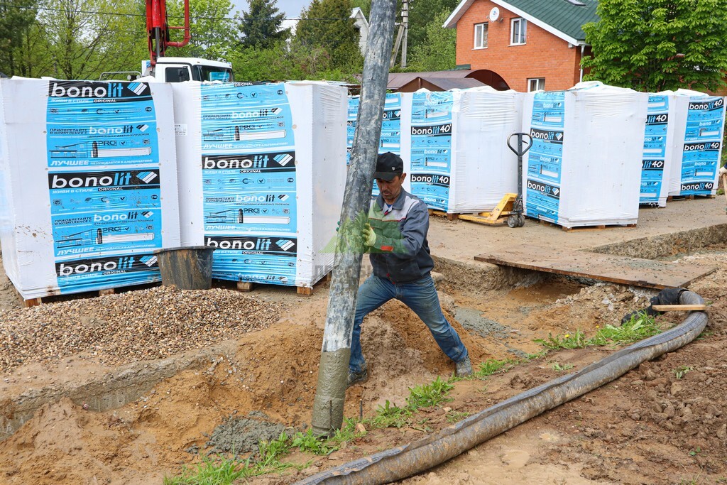 - Бетонирование свай и интеграция с плитой: Скважины были заполнены высокопрочным бетоном класса не ниже М350 с использованием глубинных вибраторов для удаления воздушных пузырей и достижения максимальной плотности. Процесс бетонирования осуществлялся непрерывно, что гарантировало монолитность и однородность свай. Важным этапом стало надёжное соединение новых свай с существующей фундаментной плитой, а также с новыми армирующими элементами, формируя единую, мощную конструкцию.