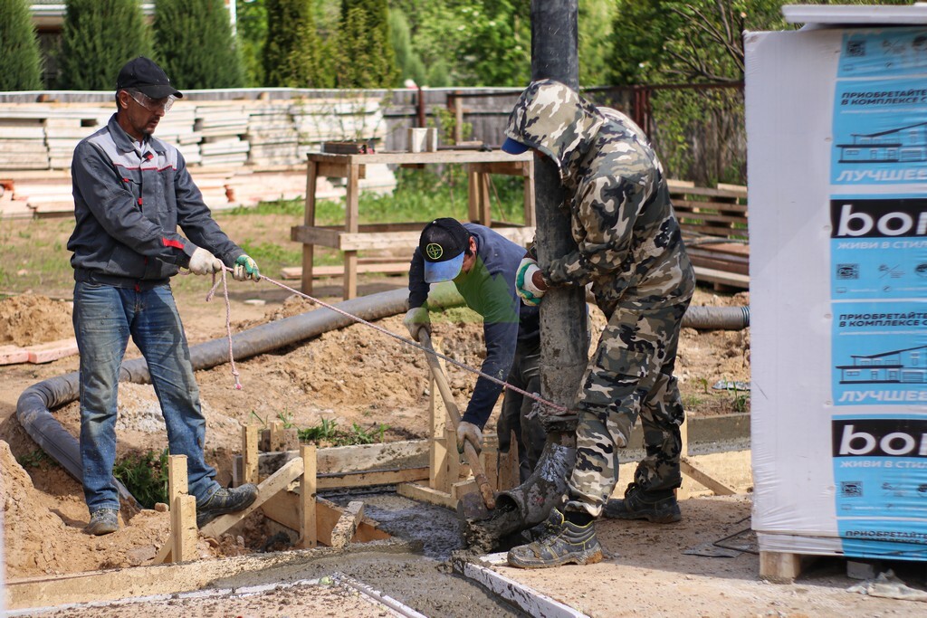 - Контроль качества и твердение бетона: После завершения бетонирования мы обеспечили оптимальные условия для твердения бетона. Это включает в себя уход за бетоном (полив водой, укрытие от прямых солнечных лучей и мороза) в течение всего периода набора прочности.