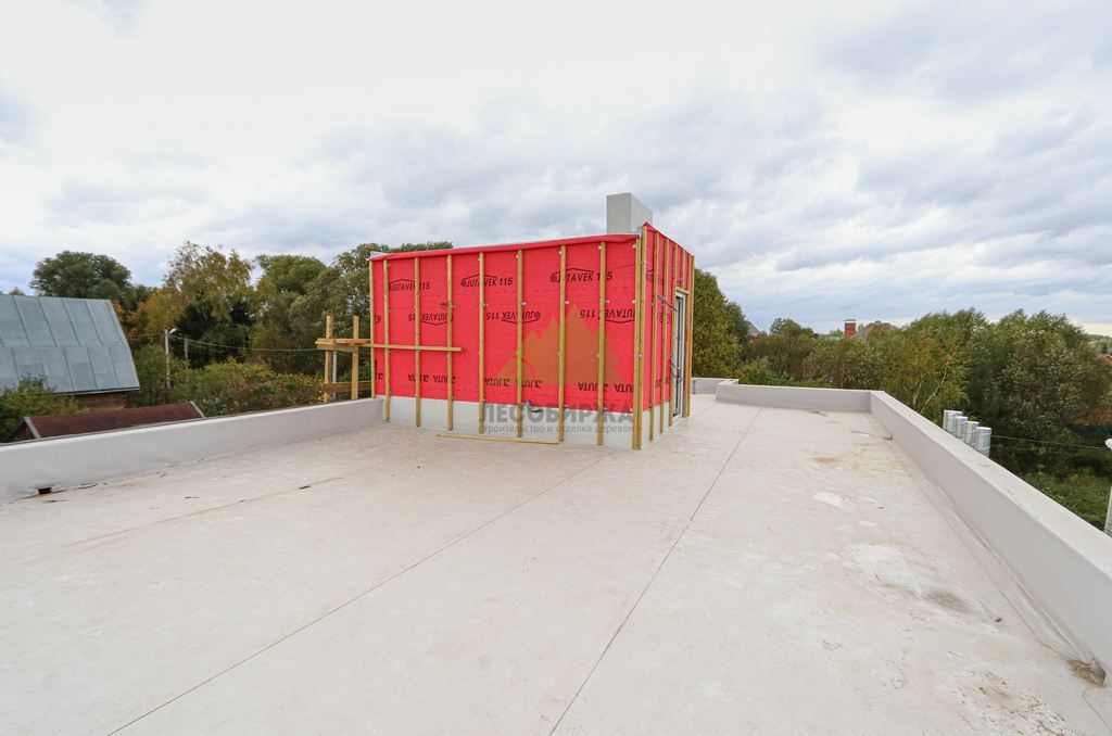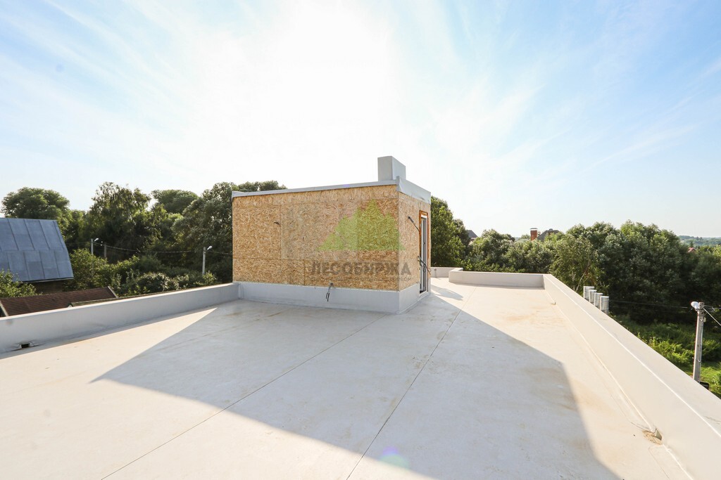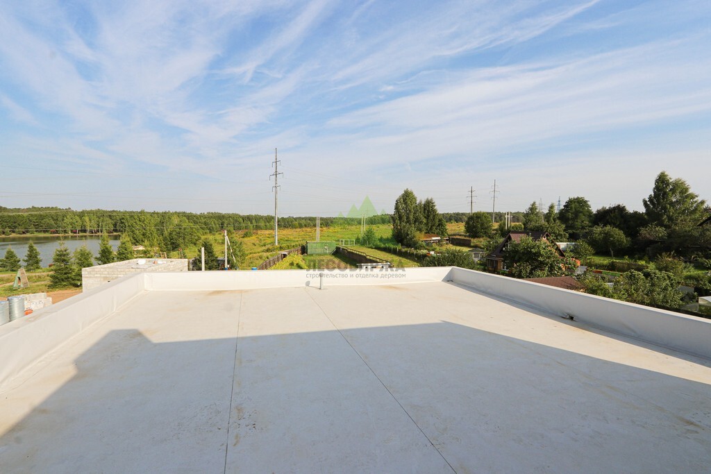 Особой гордостью этого проекта стала плоская эксплуатируемая кровля. Создание такой кровли – это сложный инженерный процесс, требующий глубоких знаний и строгого соблюдения технологий, о чем всегда напоминают наши эксперты. Мы смонтировали мощную стропильную систему, которая стала основой для многослойного кровельного "пирога". Он включает в себя несколько слоев пароизоляции, высокоэффективную теплоизоляцию, обеспечивающую комфортную температуру внутри дома круглый год, и, конечно, многоуровневую систему гидроизоляции, критически важную для эксплуатируемых кровель. Особое внимание было уделено системе разуклонки, которая гарантирует эффективный отвод дождевой и талой воды, предотвращая ее застой. Установлена современная водосточная система, интегрированная в общий дизайн дома, что обеспечивает надежный сбор и отведение воды. Эксплуатируемая кровля открывает широкие возможности для ее использования: здесь можно обустроить уютную террасу, зону отдыха, место для барбекю или даже небольшой зеленый сад. Это решение добавляет дому функциональности и повышает его ценность, предоставляя владельцам уникальное пространство для наслаждения видами Озера Врево и окружающей природы.