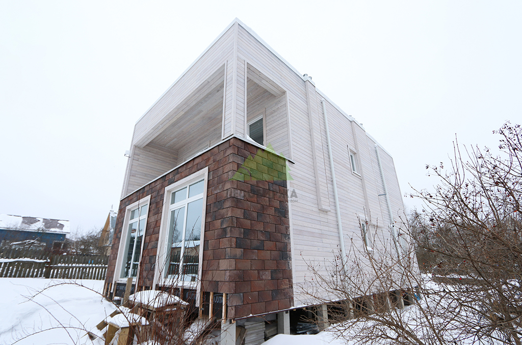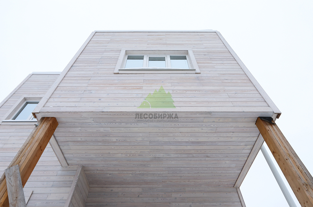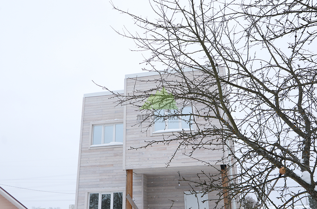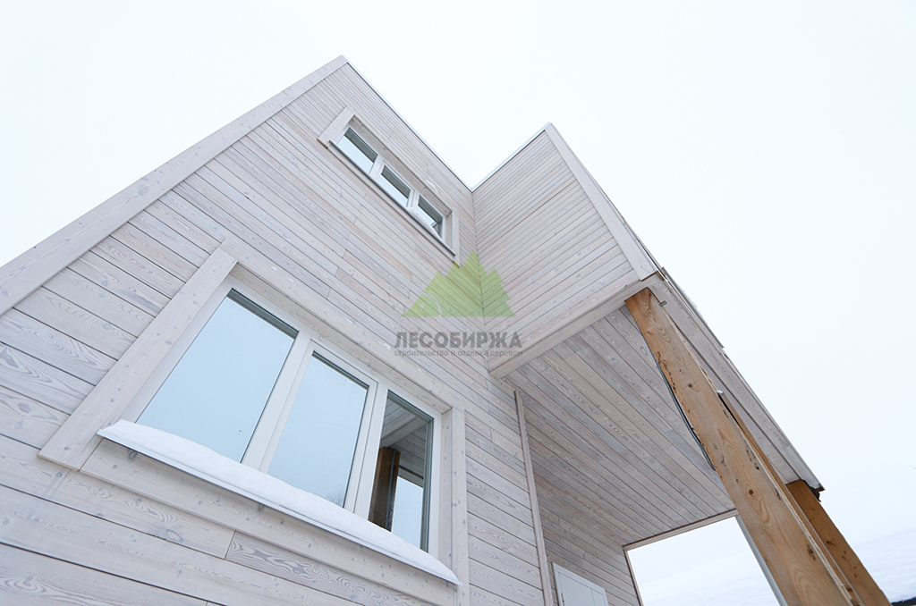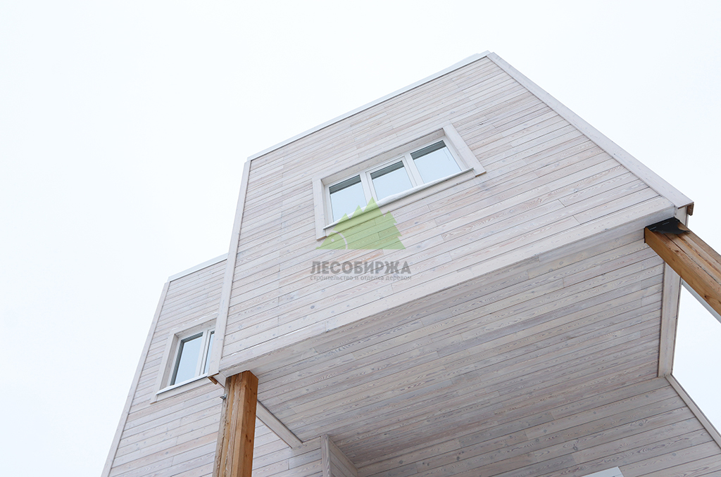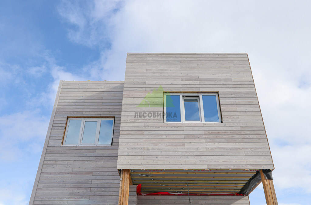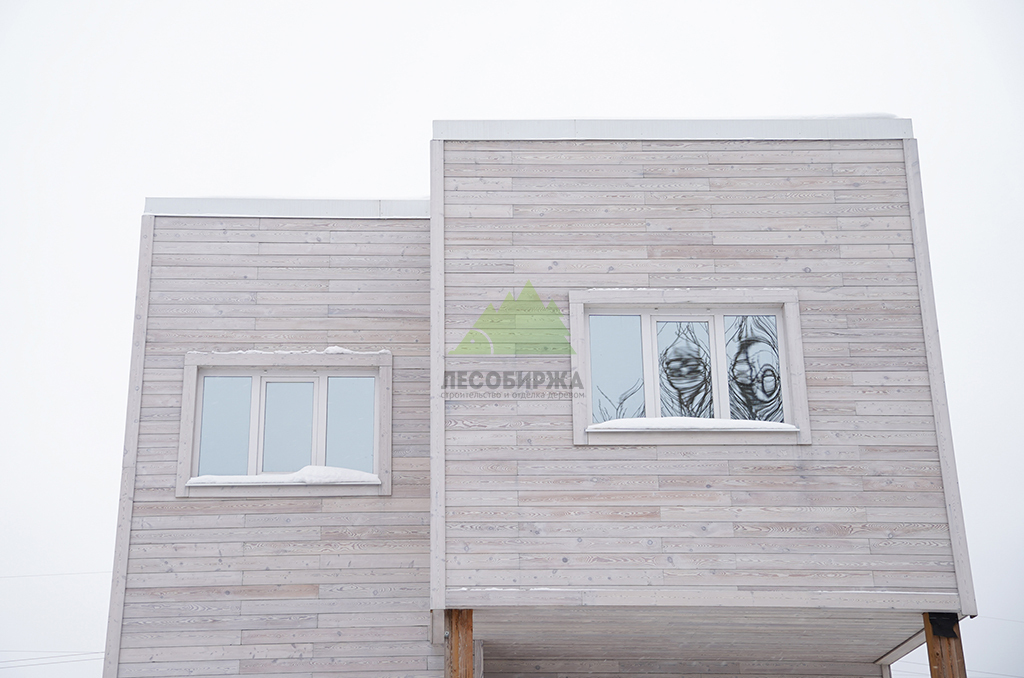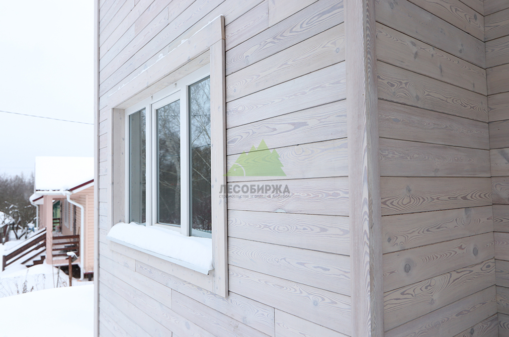 Для обеспечения максимального комфорта, естественного освещения и энергоэффективности, в доме были установлены современные пластиковые окна Veko с профильной системой WHS 72. Эти окна отличаются высокими показателями тепло- и звукоизоляции, надежностью и долговечностью, что является залогом уюта в доме при любых погодных условиях. Все наличники, откосы и доборы для окон были специально изготовлены в нашем малярном цехе из той же термированной лиственницы, что и фасад. Это позволило создать единый стилистический ансамбль и гарантировать идеальное сочетание цветов и фактур, подчеркивая внимание Лесобиржи-Спб к деталям и общему архитектурному облику объекта.