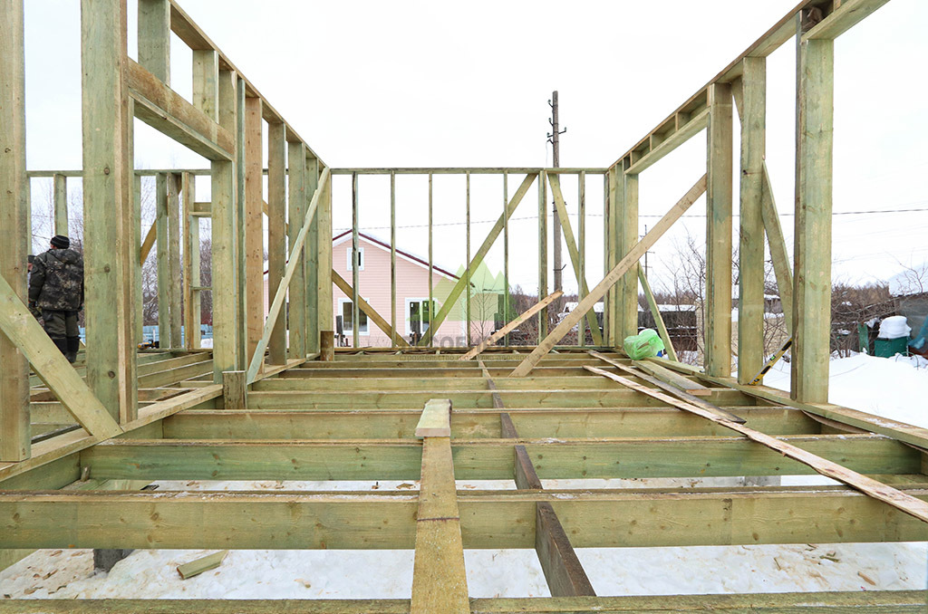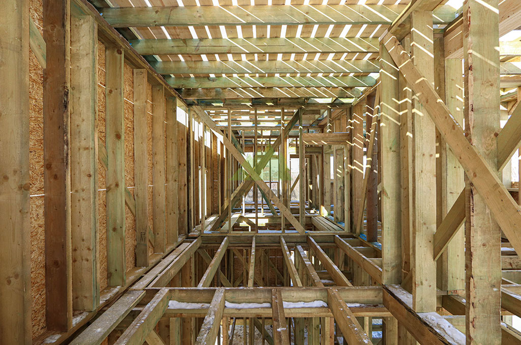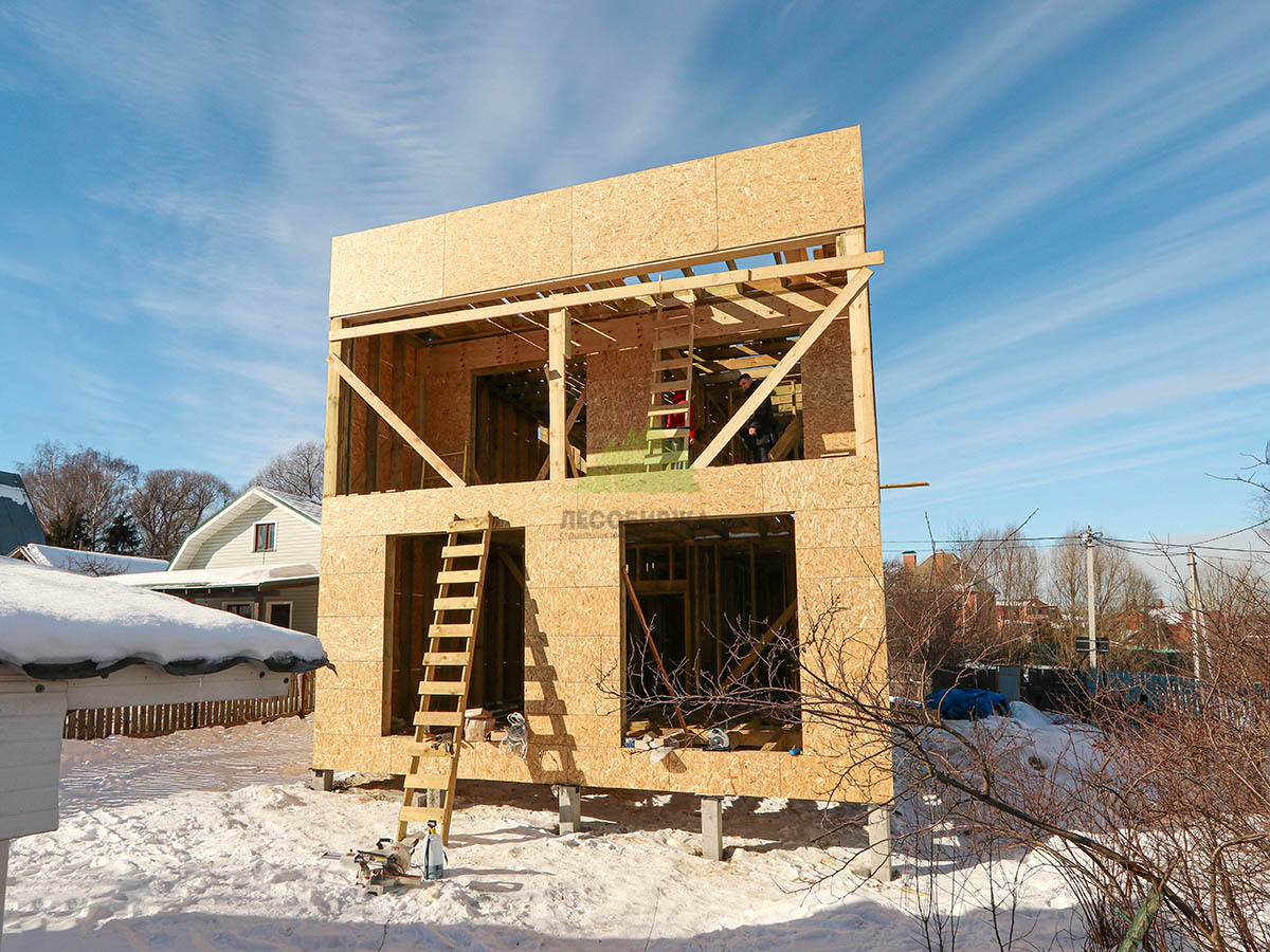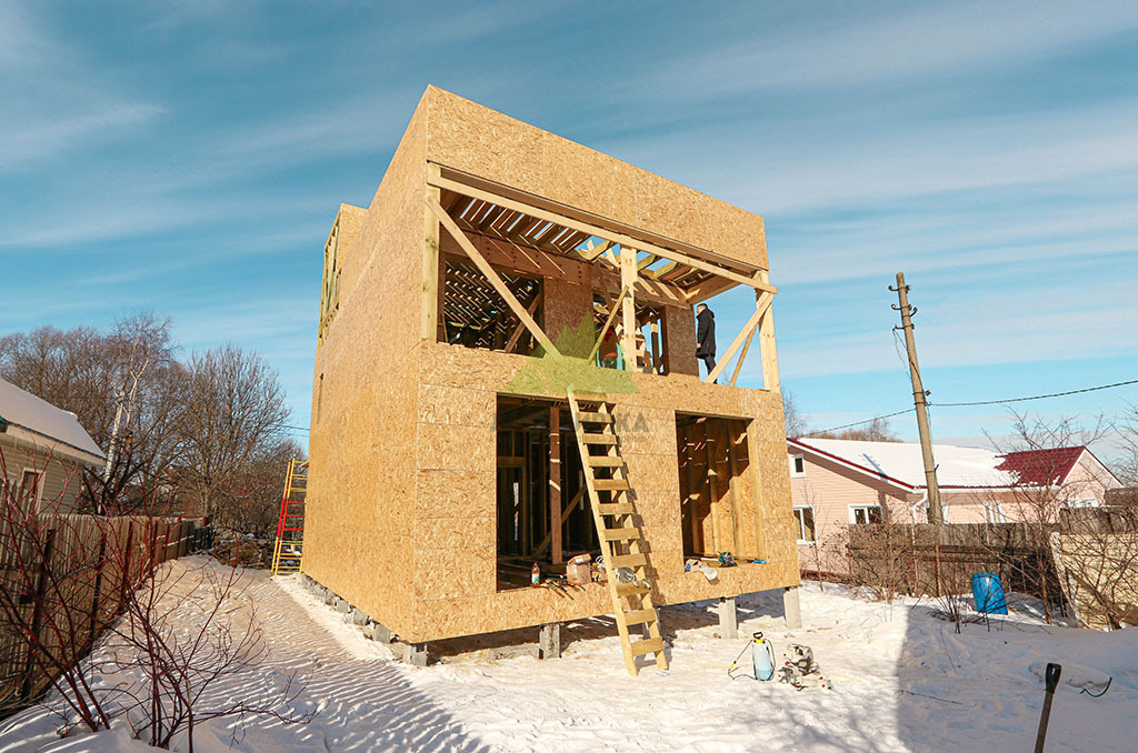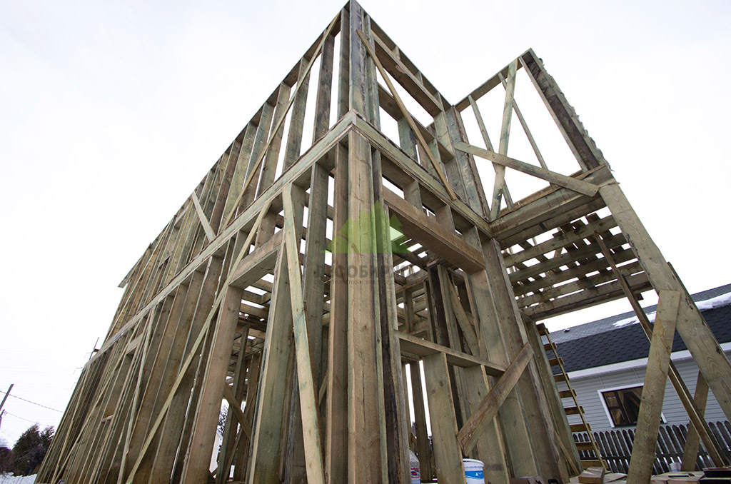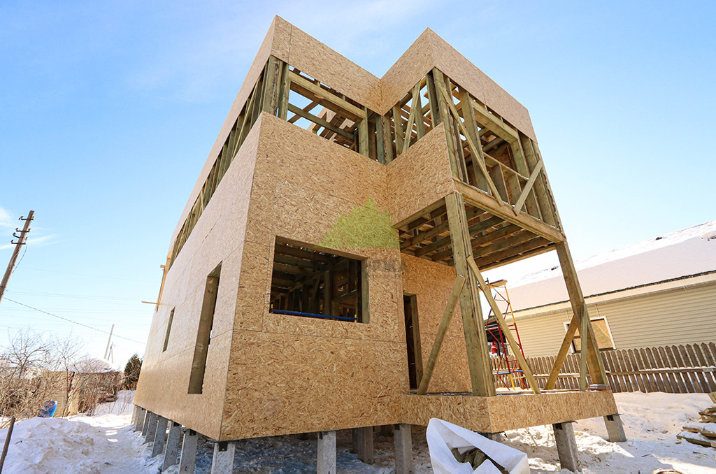 Над фундаментом было смонтировано цокольное перекрытие, в конструкции которого мы применили высокопрочные двутавровые балки размером 64 на 240 мм. Использование таких балок позволяет создавать жесткие и прочные перекрытия, способные выдерживать значительные нагрузки без прогибов, что критично для комфортной эксплуатации второго этажа и общего ощущения надежности дома. Следующим шагом стало возведение каркаса стен и межкомнатных перегородок. Для этого мы использовали отборную древесину камерной сушки, обеспечивающую минимальную усадку и стабильность всей конструкции. Внутреннее пространство стен и перегородок было заполнено высокоэффективной минеральной ватой Paroc Extra. Этот утеплитель не только обеспечивает превосходные теплоизоляционные свойства, снижая затраты на отопление, но также обладает отличными звукоизоляционными характеристиками, создавая тихую и спокойную атмосферу в доме. Paroc Extra является негорючим и экологически безопасным материалом, что подтверждает наше стремление к использованию только проверенных и качественных решений.
