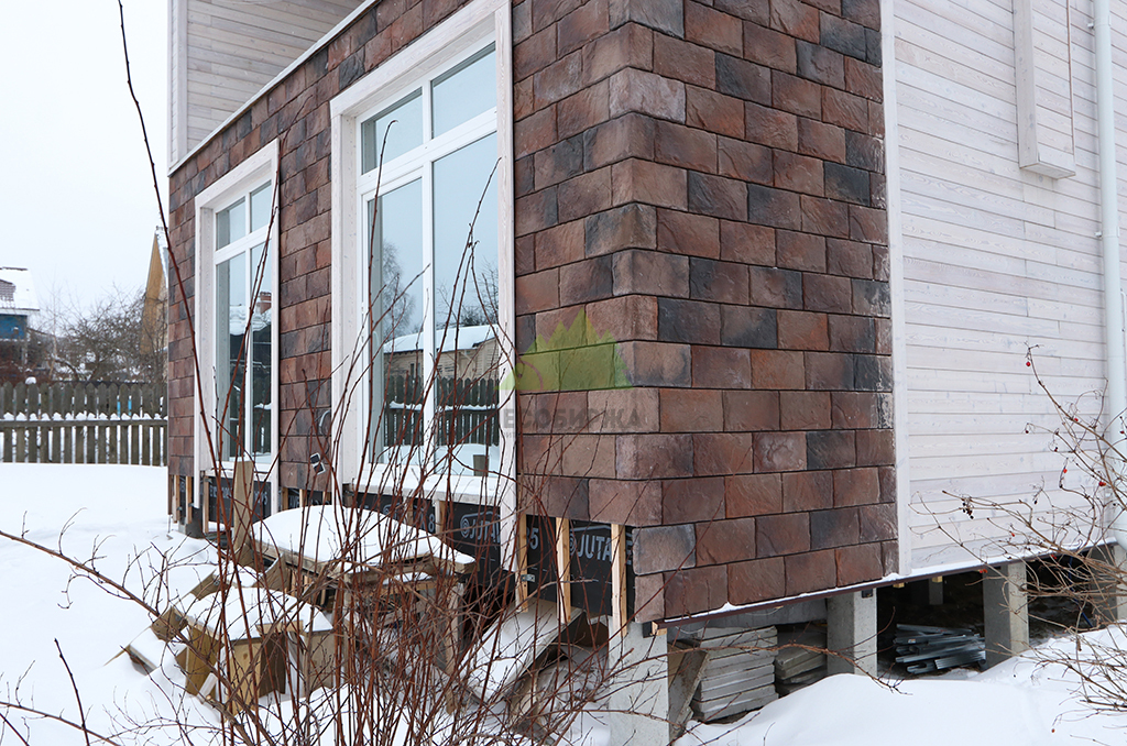 Фасадная композиция дома была обогащена гармоничным сочетанием древесины и искусственного камня. Часть внешних стен была облицована высококачественным искусственным камнем, который монтировался на специально разработанную деревянную подсистему. Такое решение позволило не только создать выразительный акцент и придать дому индивидуальный характер, но и обеспечить дополнительную теплоизоляцию, а также надежную защиту стен. Сочетание теплой фактуры термированной лиственницы и солидности искусственного камня создает ощущение прочности, надежности и безупречного стиля, демонстрируя "технически безупречную эстетику", о которой мы всегда говорим. Этот контраст материалов подчеркивает современную архитектуру дома и его органичную связь с природой Озера Врево.