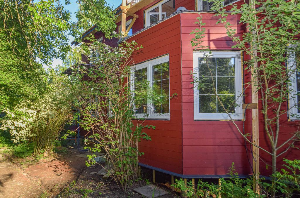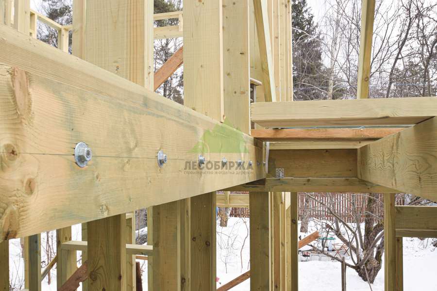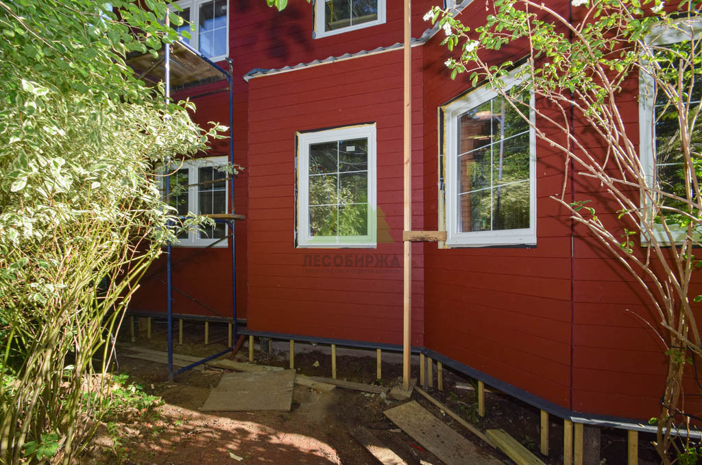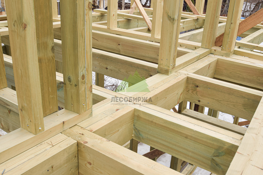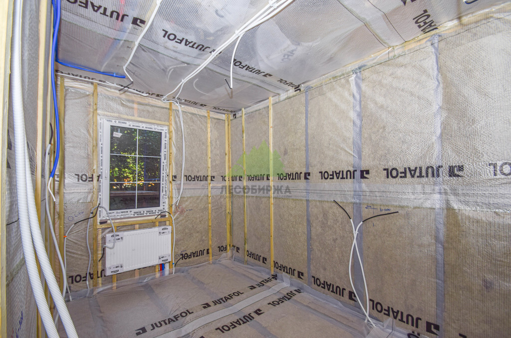 Внутренние работы в каркасном доме благодаря Лесобирже-Спб прошли максимально эффективно. Гладкие и ровные поверхности стен, пола и потолка, полученные при качественной сборке каркаса, позволили существенно сократить время и затраты на отделку. Электропроводка, водопровод и канализация были проложены скрытым способом внутри стен, что не только эстетично, но и безопасно. Мы выполнили полный комплекс работ по разводке всех инженерных систем, включая монтаж сантехники и отопительных приборов. По желанию клиента, стены внутри были обшиты экологичной имитацией бруса, создавая неповторимую атмосферу загородного дома. Потолки были выполнены из сухой строганной доски, а полы – из прочной и красивой массивной доски. Финишная отделка полов и потолков выполнена защитными лакокрасочными материалами.