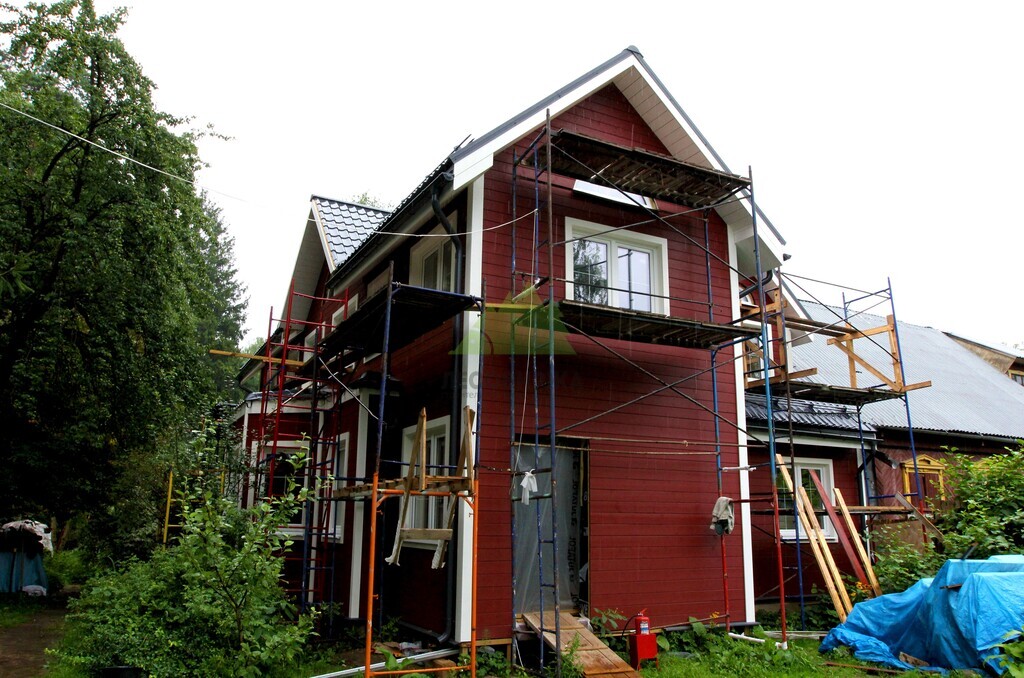 В живописной местности Ленинградской области, в уютном поселке Славянская Мыза, к нам в компанию Лесобиржа-Спб обратился заказчик с непростой задачей. На участке стоял старый, потрёпанный временем каркасный дом, который, по изначальной задумке клиента, требовал капитальной реставрации. Хотелось вдохнуть в него новую жизнь, сохранить "дух" места, но при этом получить современное и комфортное жилье.