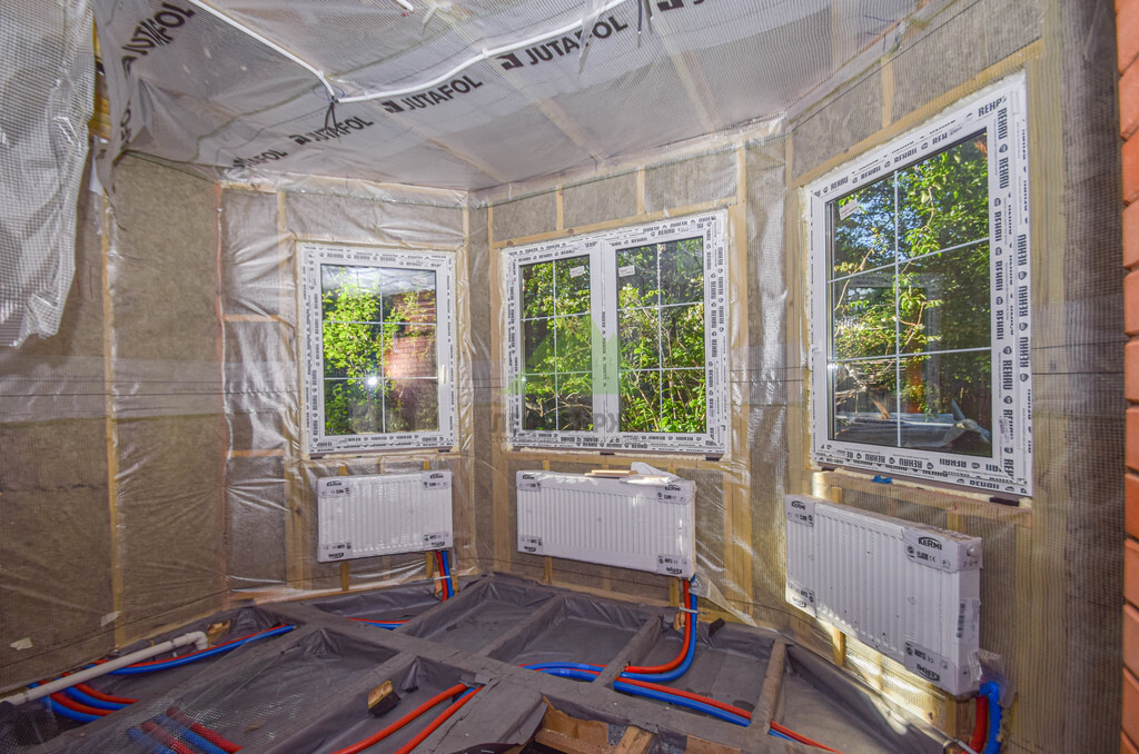 Установка окон и дверей также заслуживает отдельного упоминания. Мы использовали энергоэффективные стеклопакеты с двойным остеклением и высококачественными профилями, которые обеспечивают максимальное сохранение тепла, отличную звукоизоляцию и защиту от сквозняков. Входная дверь была выбрана с повышенными теплоизоляционными характеристиками и надежной системой защиты.