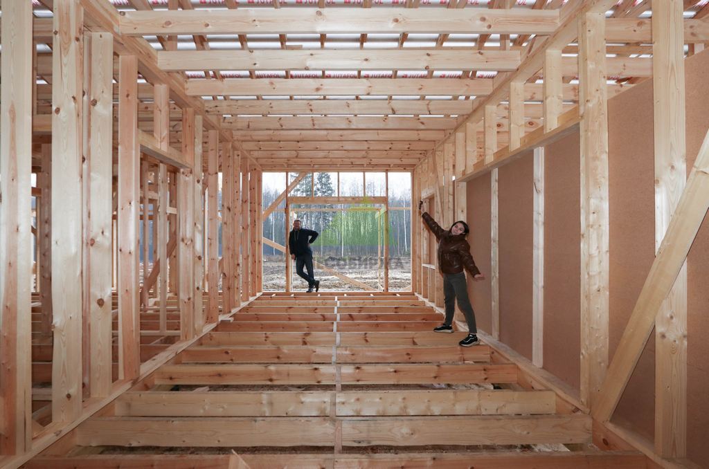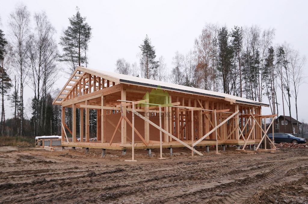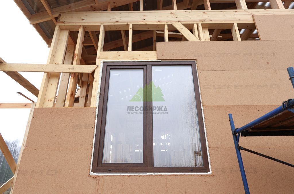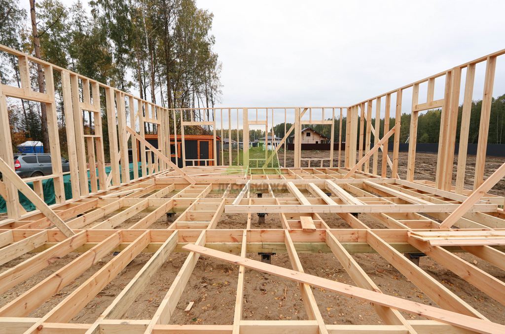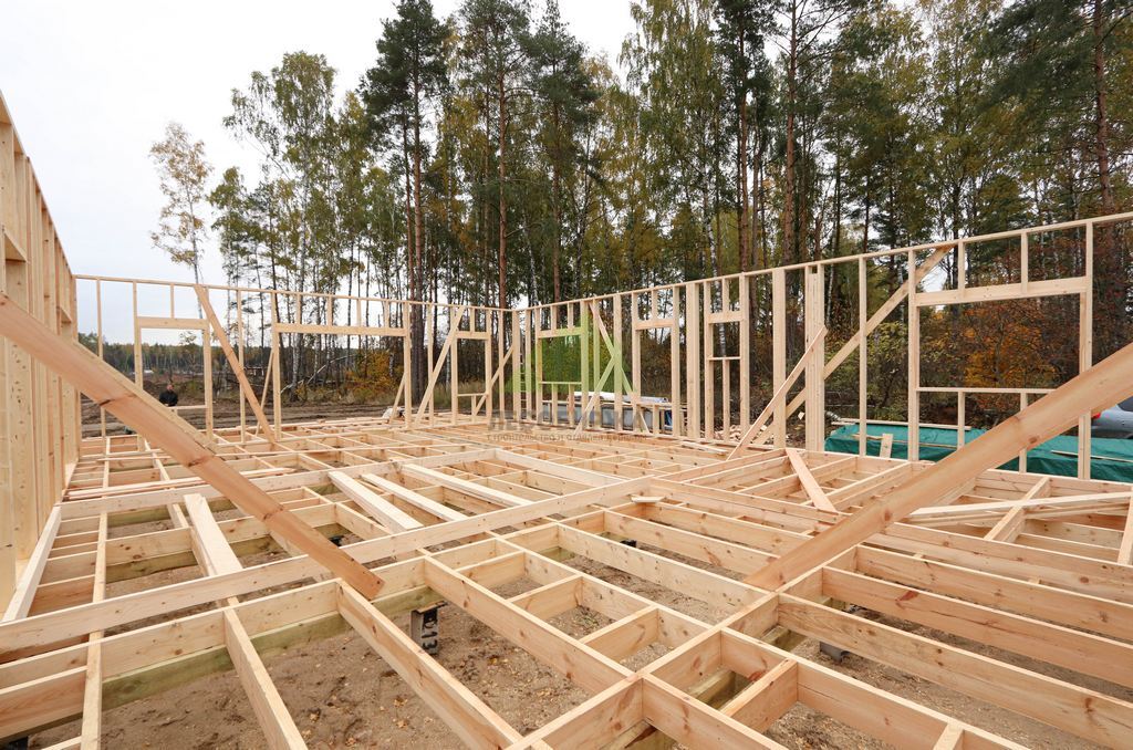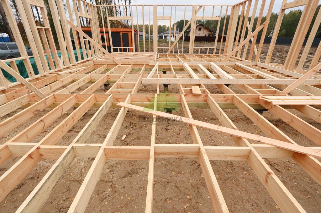 Для возведения каркаса мы использовали исключительно сухую строганную доску из сосны сечением 195х45 мм, прошедшую камерную сушку. Этот материал является эталоном качества в современном каркасном домостроении. Камерная сушка обеспечивает доске оптимальный уровень влажности (ниже 12%), что предотвращает усадку, деформацию и появление трещин в процессе эксплуатации. Строганная поверхность гарантирует идеальную геометрию и плотное прилегание элементов, исключая "мостики холода" и обеспечивая высокую прочность конструкции. Кроме того, использование такой доски значительно упрощает дальнейшую отделку и обеспечивает экологичность вашего будущего дома, что крайне важно для комфортной и здоровой жизни семьи.