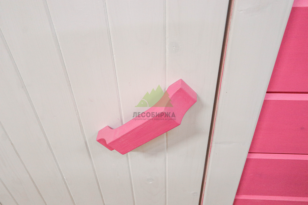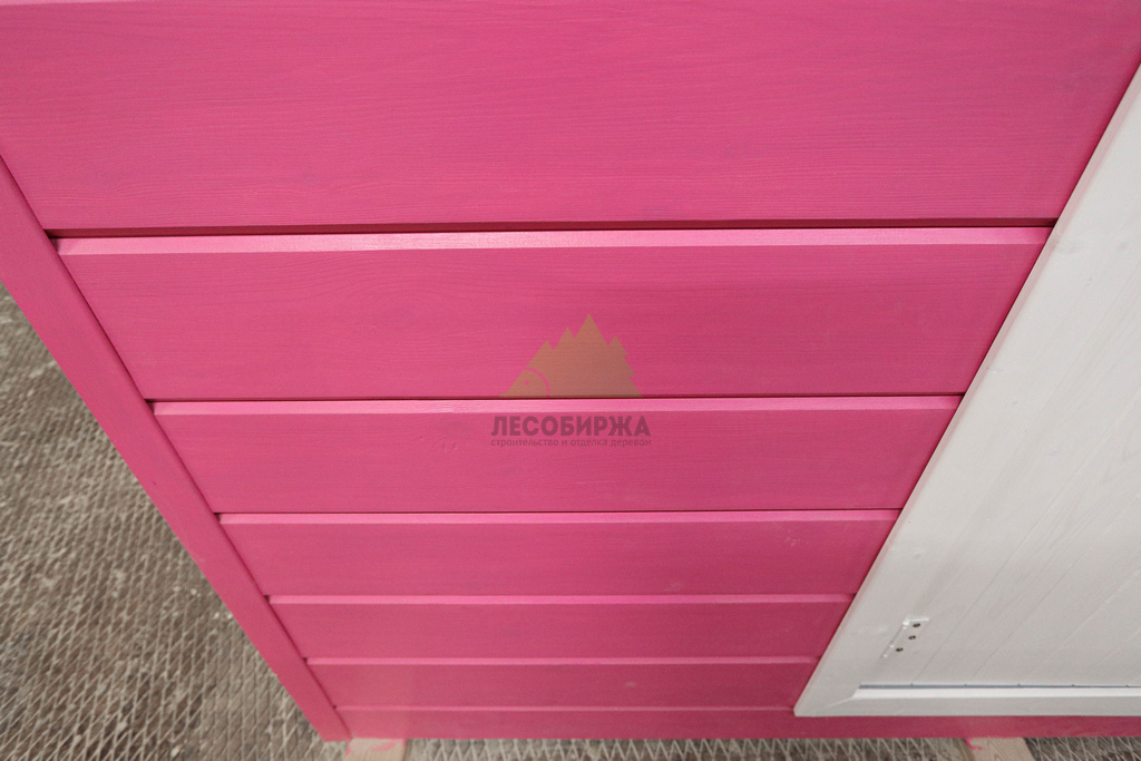 Перед монтажом все доски планкена прошли тщательную обработку в нашем малярном цехе. Использовалась грунтовка "Renner" YM M101, которая обеспечивает глубокое проникновение и надежное сцепление с древесиной, а затем – гидромасло для лиственницы "Renner" YS A300. Эти профессиональные средства не только усиливают защитные свойства древесины, предотвращая её гниение и растрескивание, но и придают фасаду выразительный, долговечный цвет. Цветовая гамма фасада, выполненная в стиле "Barbie" – яркий розовый в сочетании с нежным белым, была выбрана с учетом пожеланий юной заказчицы. Каждая панель была окрашена на нашем специализированном оборудовании, что гарантирует равномерное покрытие без подтеков и разводов, с качеством, сравнимым с мебельной отделкой. Мастера Лесобиржи-Спб обладают богатым опытом в работе с красящими составами, что позволяет достигать безупречного результата.